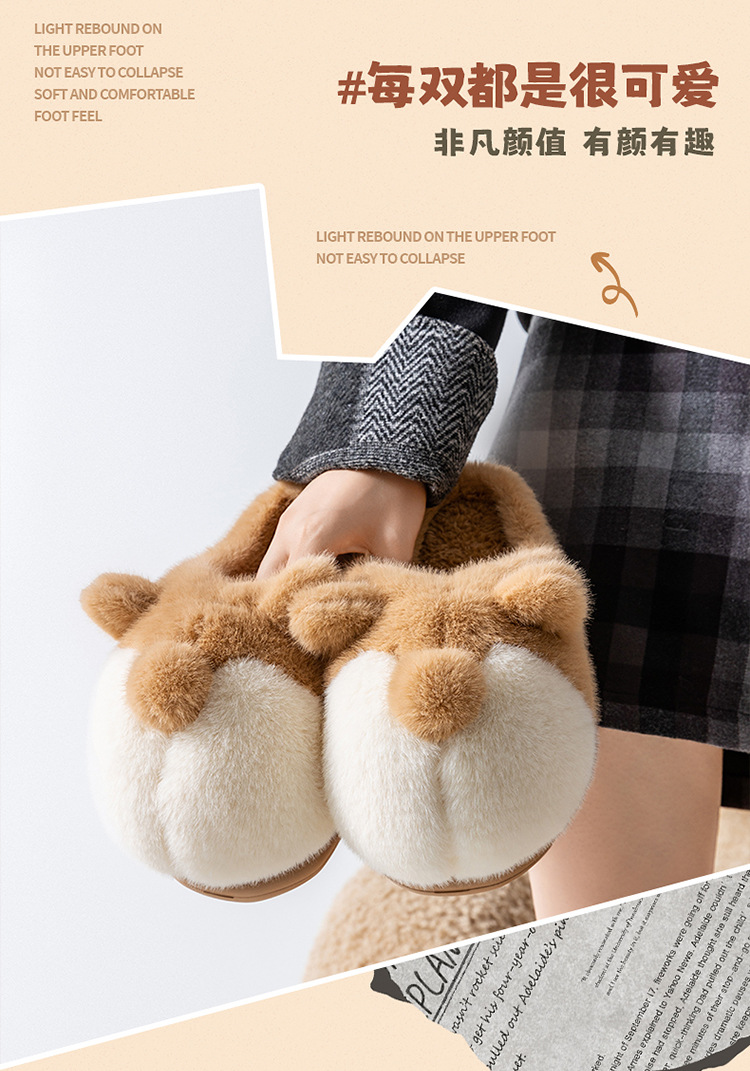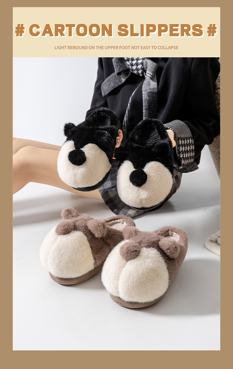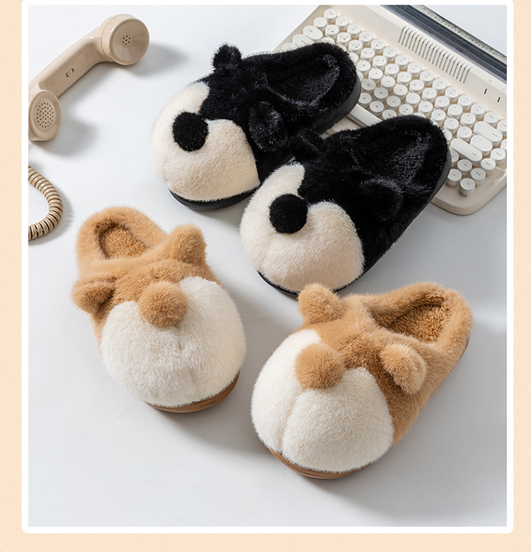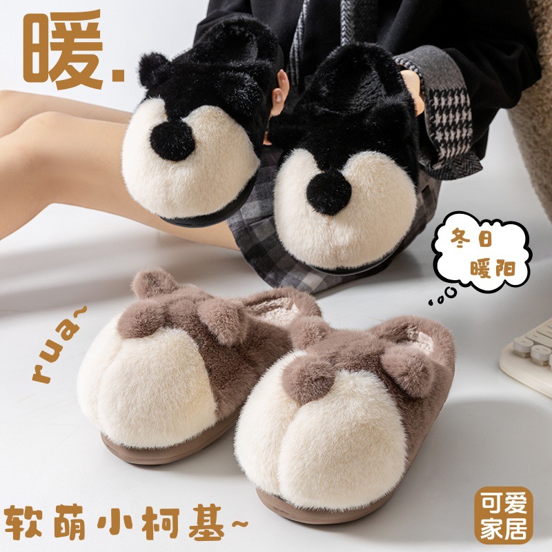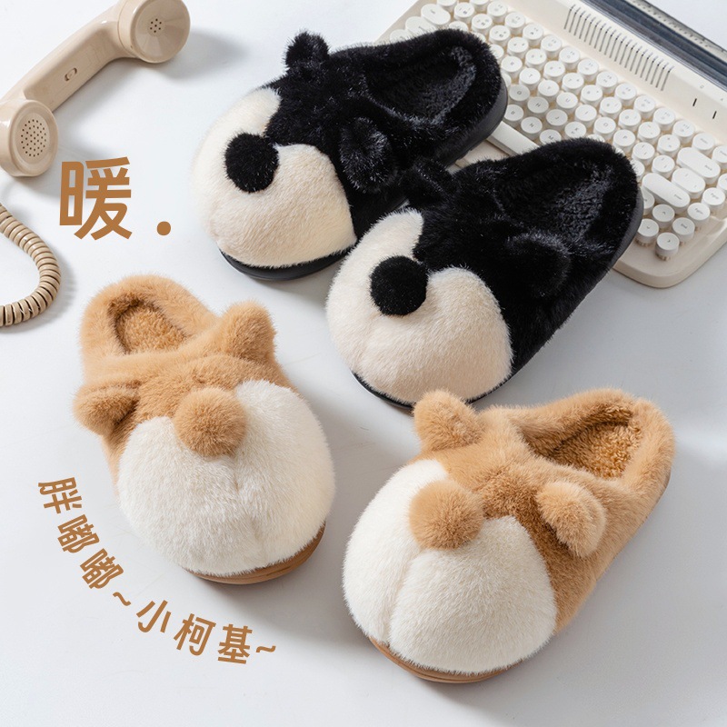 cartoon cotton slippers women's autumn and winter 2025 new velvet thermal non-slip home indoor corgi fluffy slippers 中文版