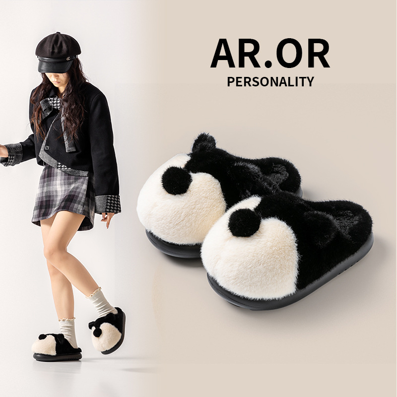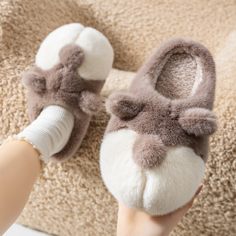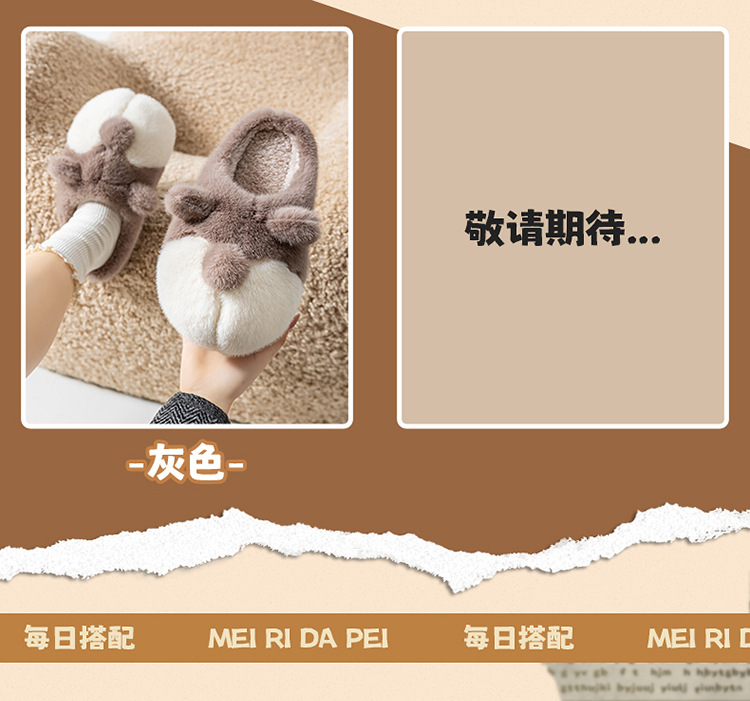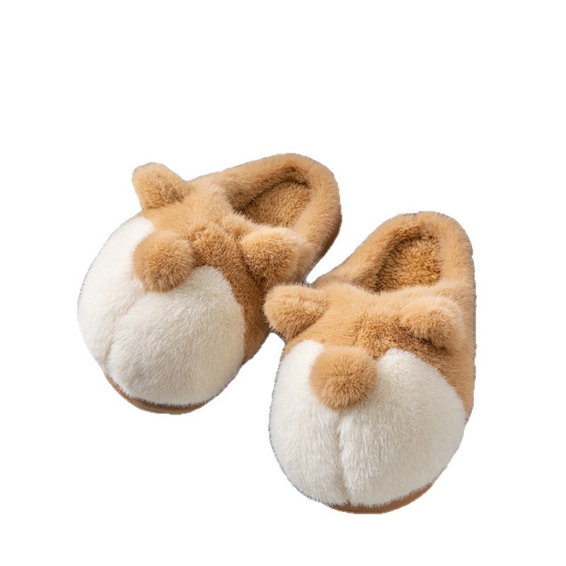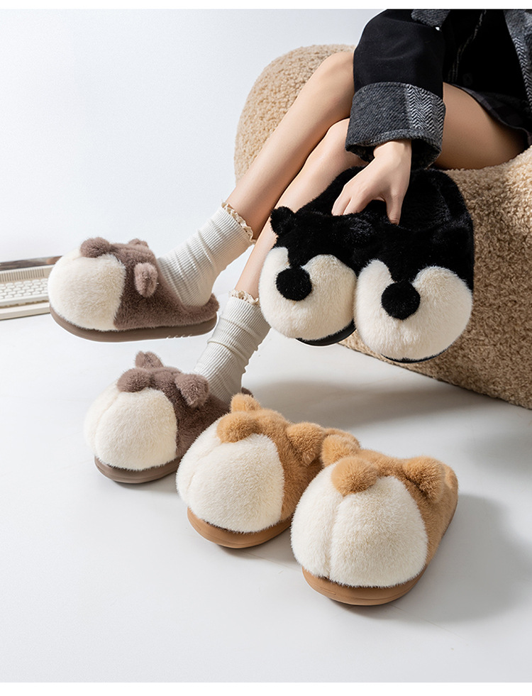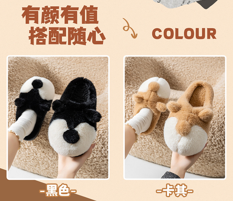 cartoon cotton slippers women's autumn and winter 2025 new velvet thermal non-slip home indoor corgi fluffy slippers 中文版