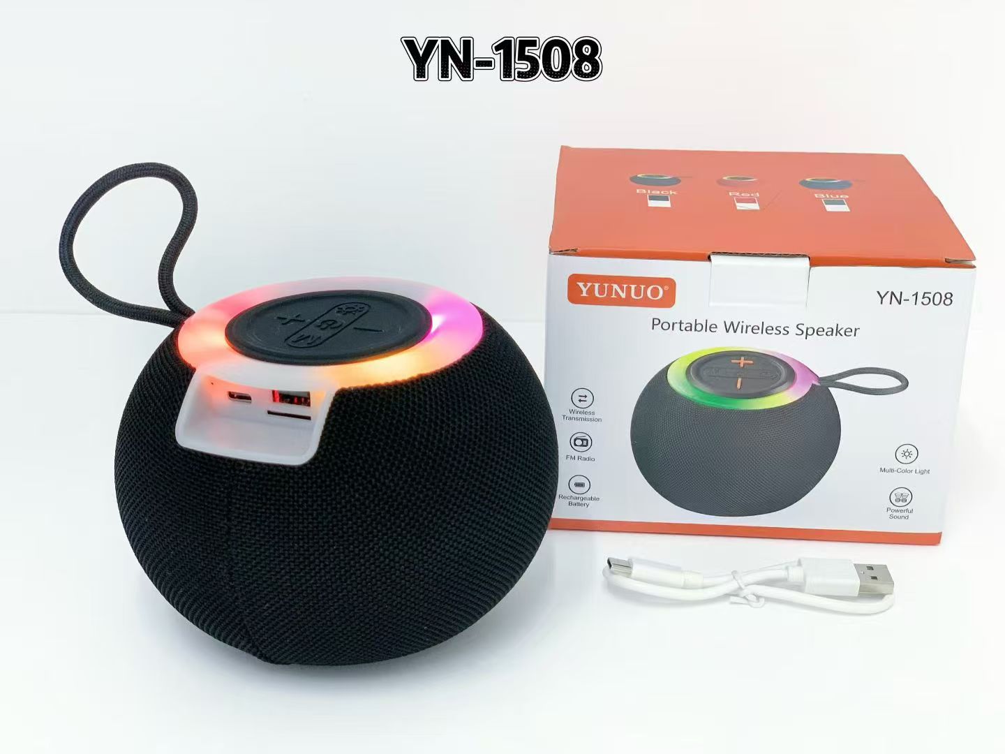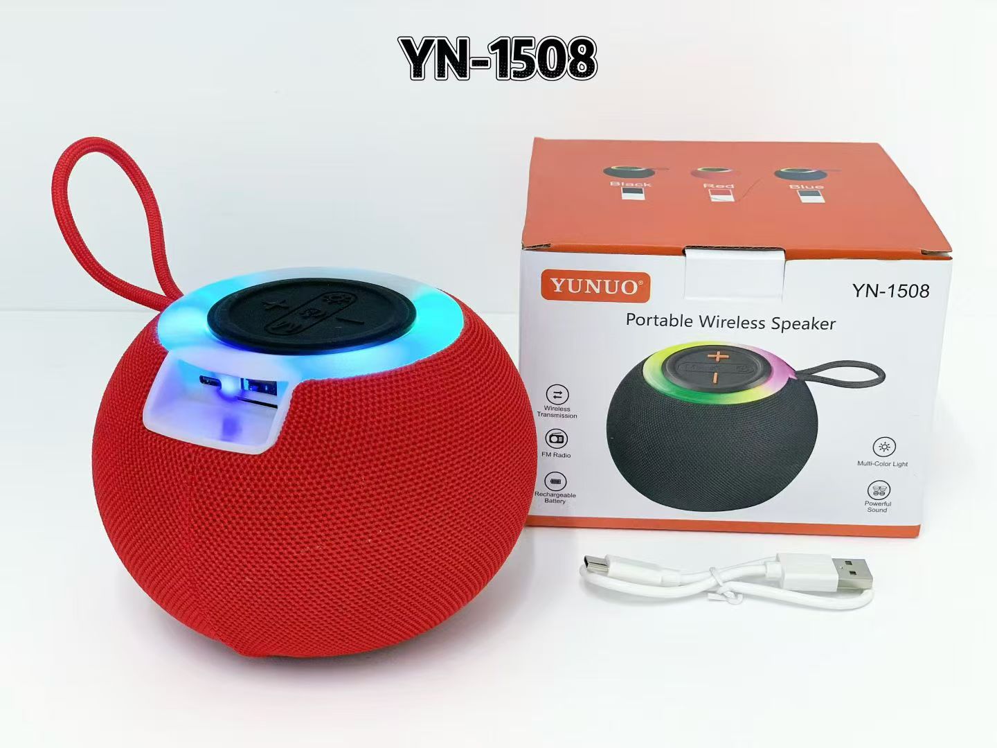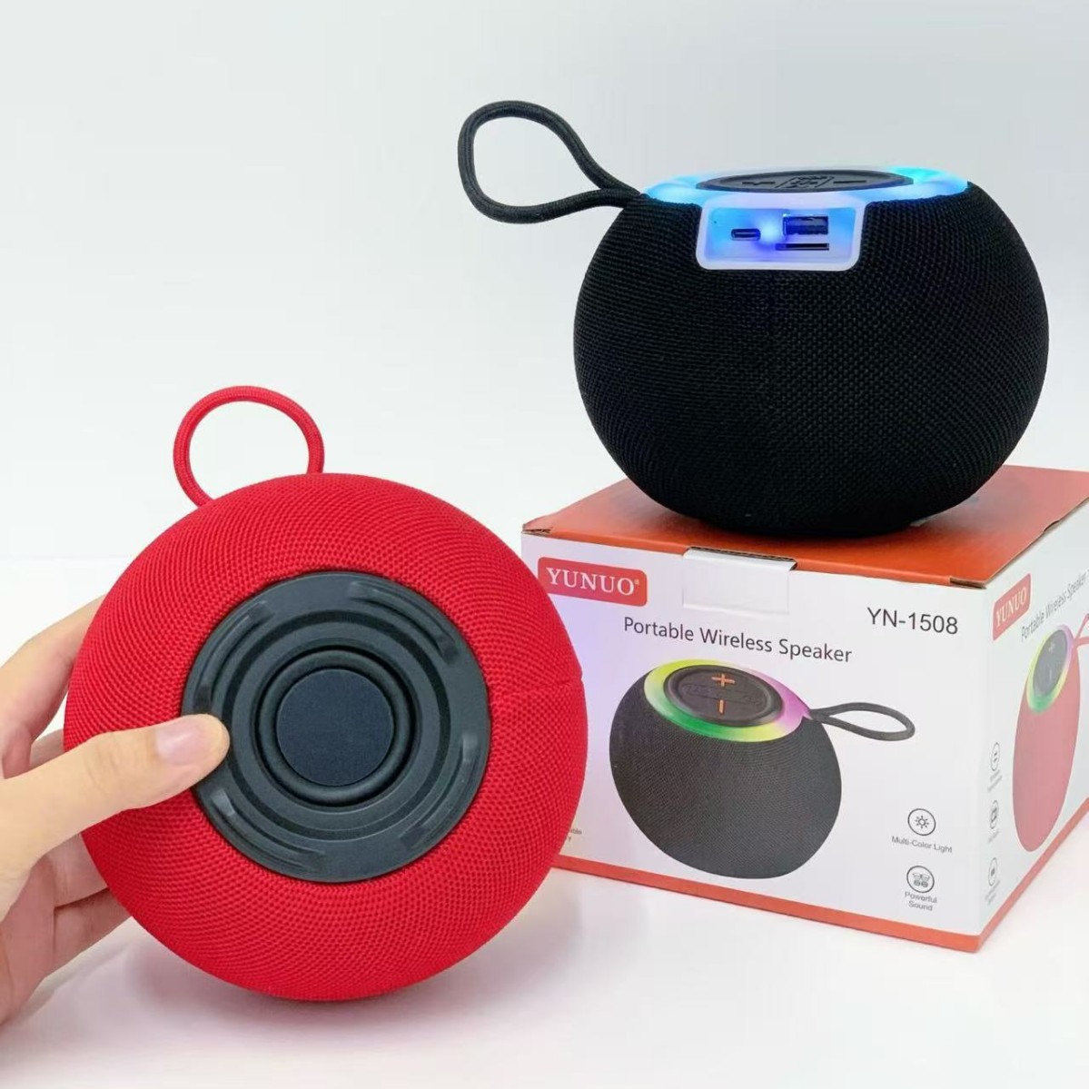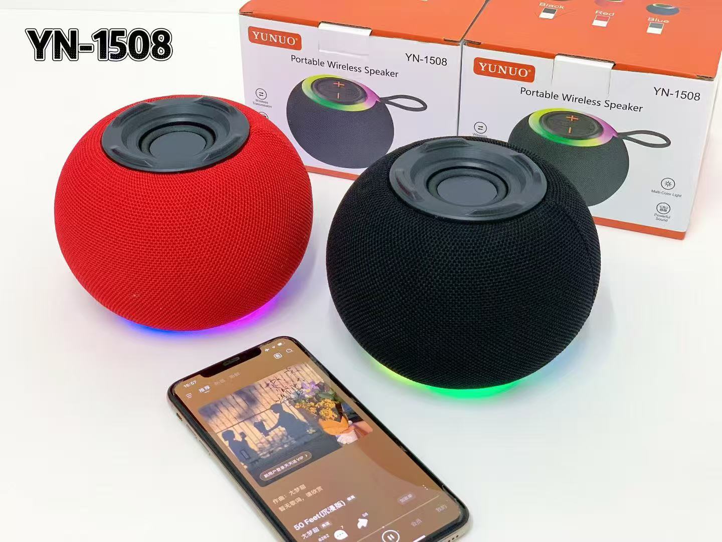 new cross-border yn-1508 bluetooth audio outdoor led light wireless portable subwoofer portable lanyard mini speaker 中文版