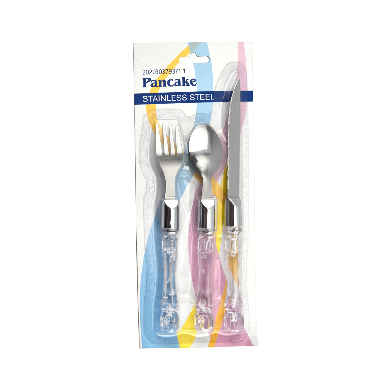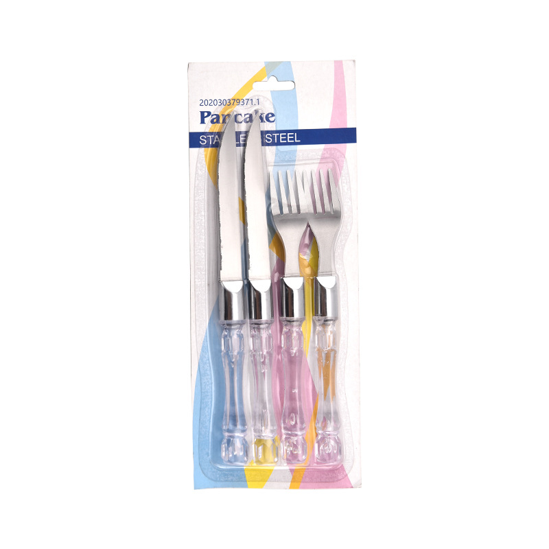 不锈钢刀叉酒店西餐刀叉甜品勺塑料柄餐具刀叉勺批发跨境创意礼品
