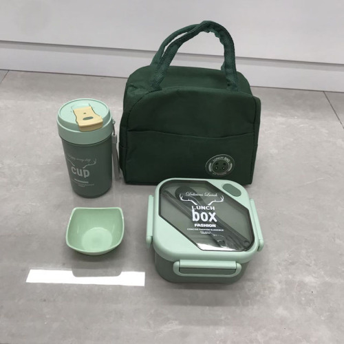 multi-color portable lunch box set with tableware cup thermal bag student office lunch box divided fresh-keeping box