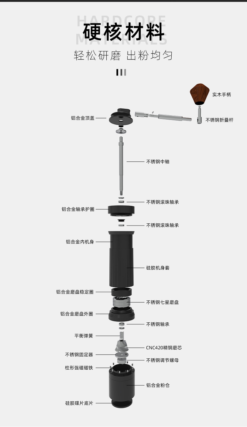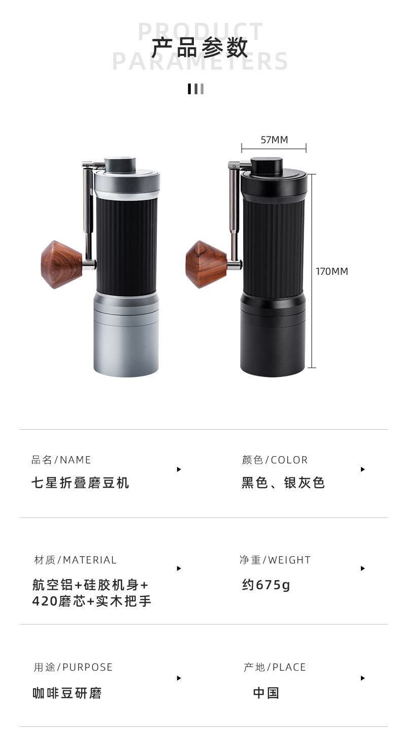 seven-star folding coffee grinder-silver gray