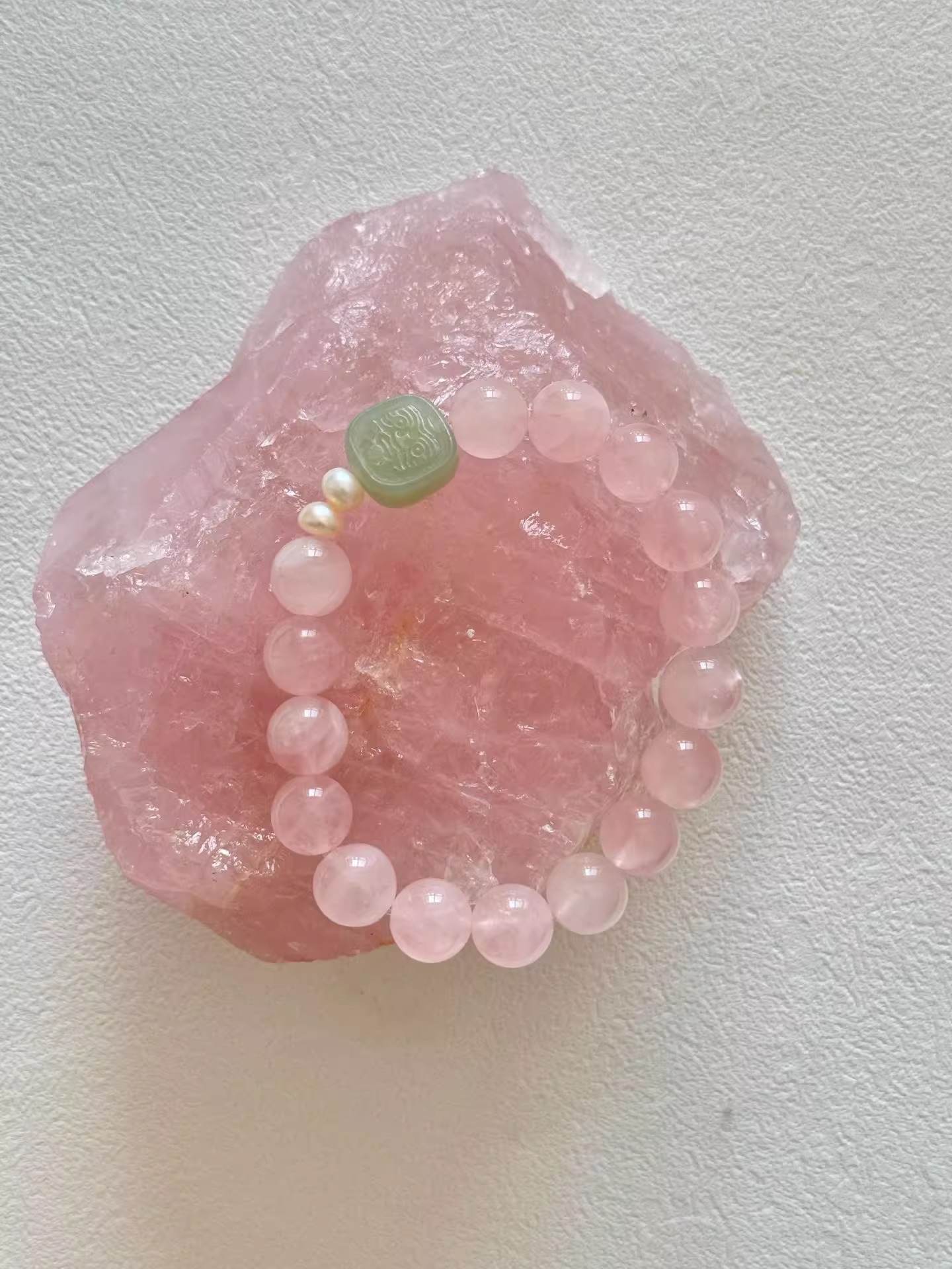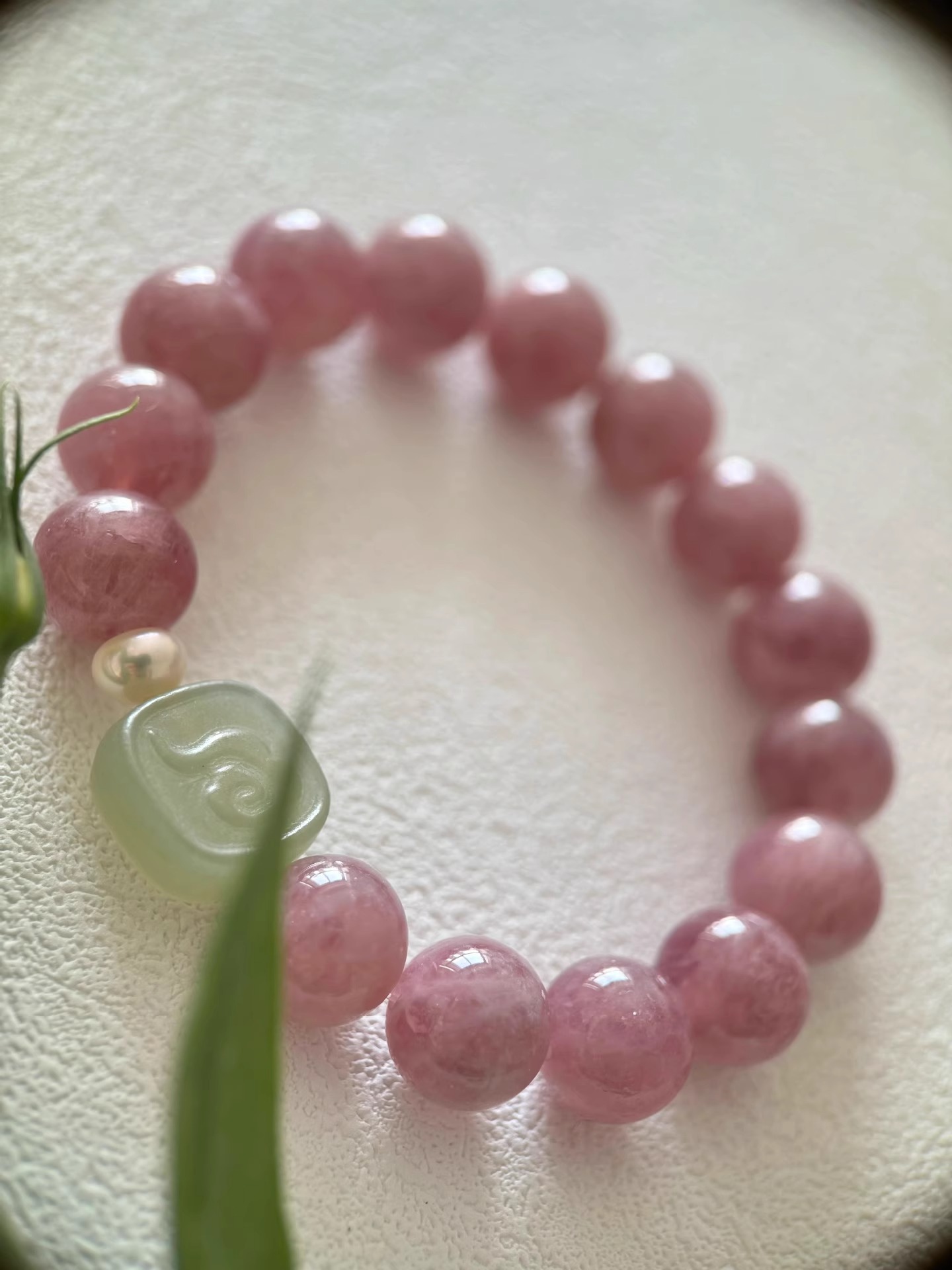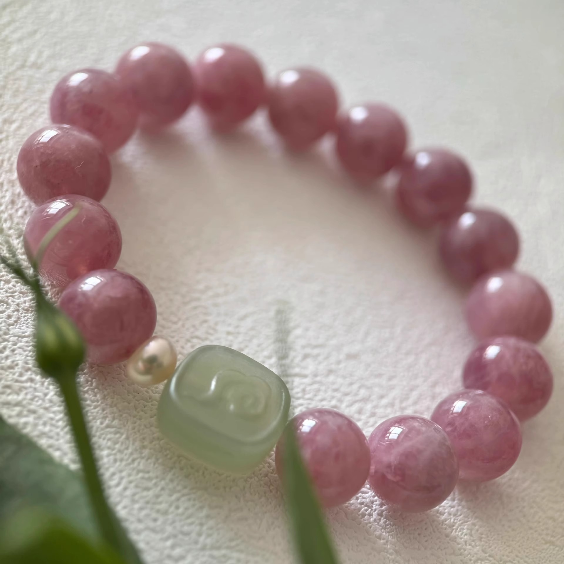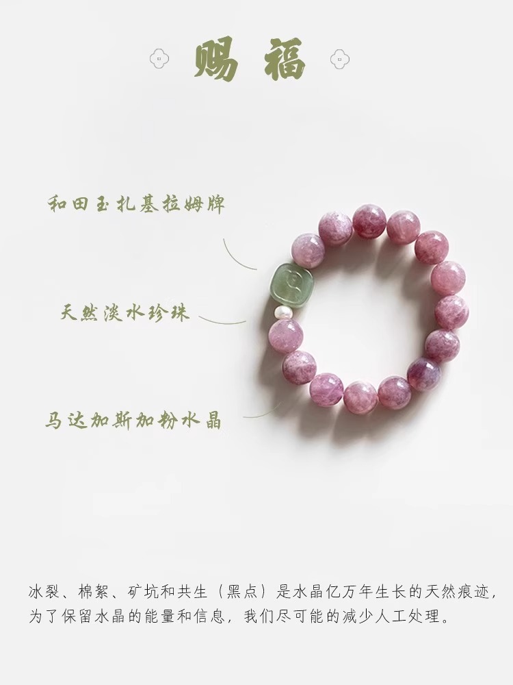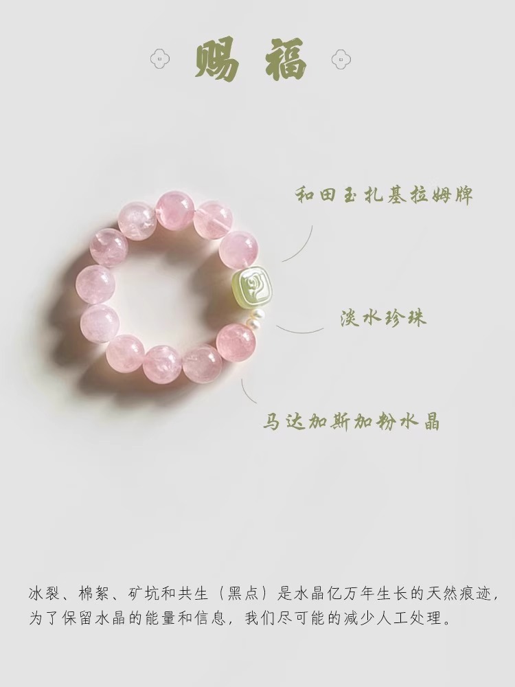 [blessing] 9-10mm madagascar pink crystal pink hetian jade pendant bracelet |