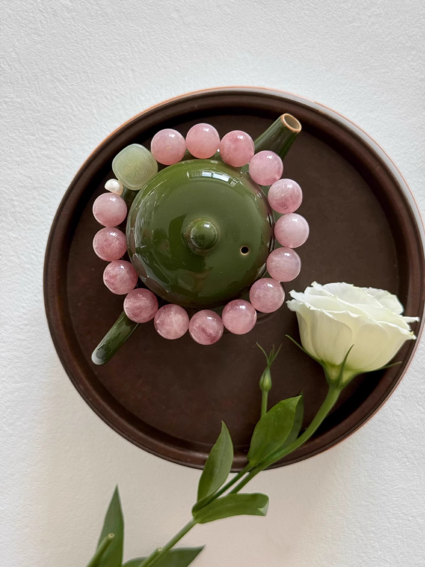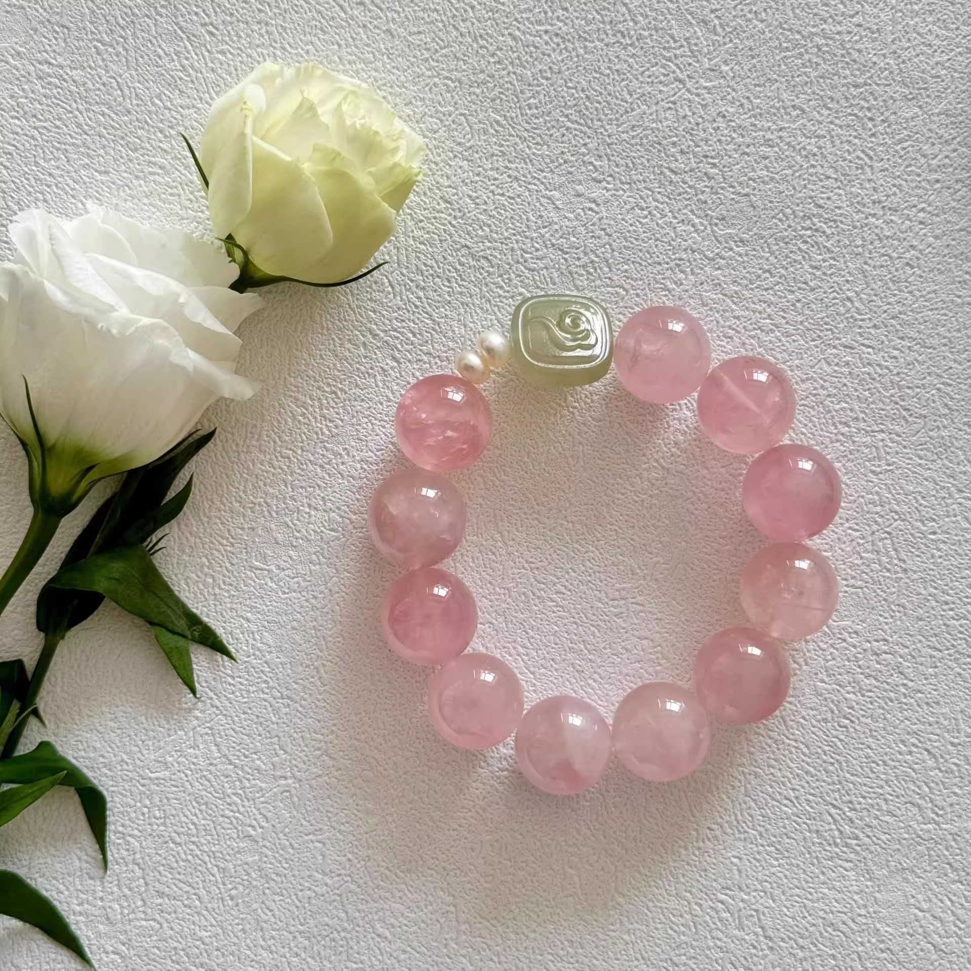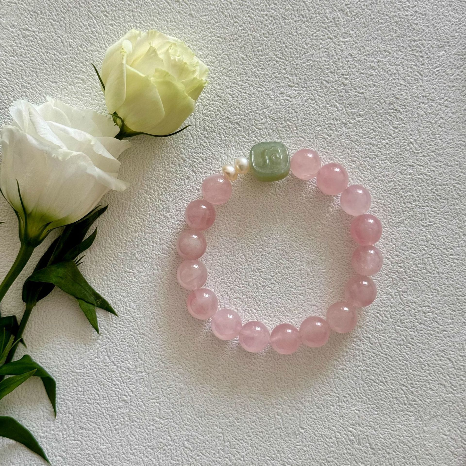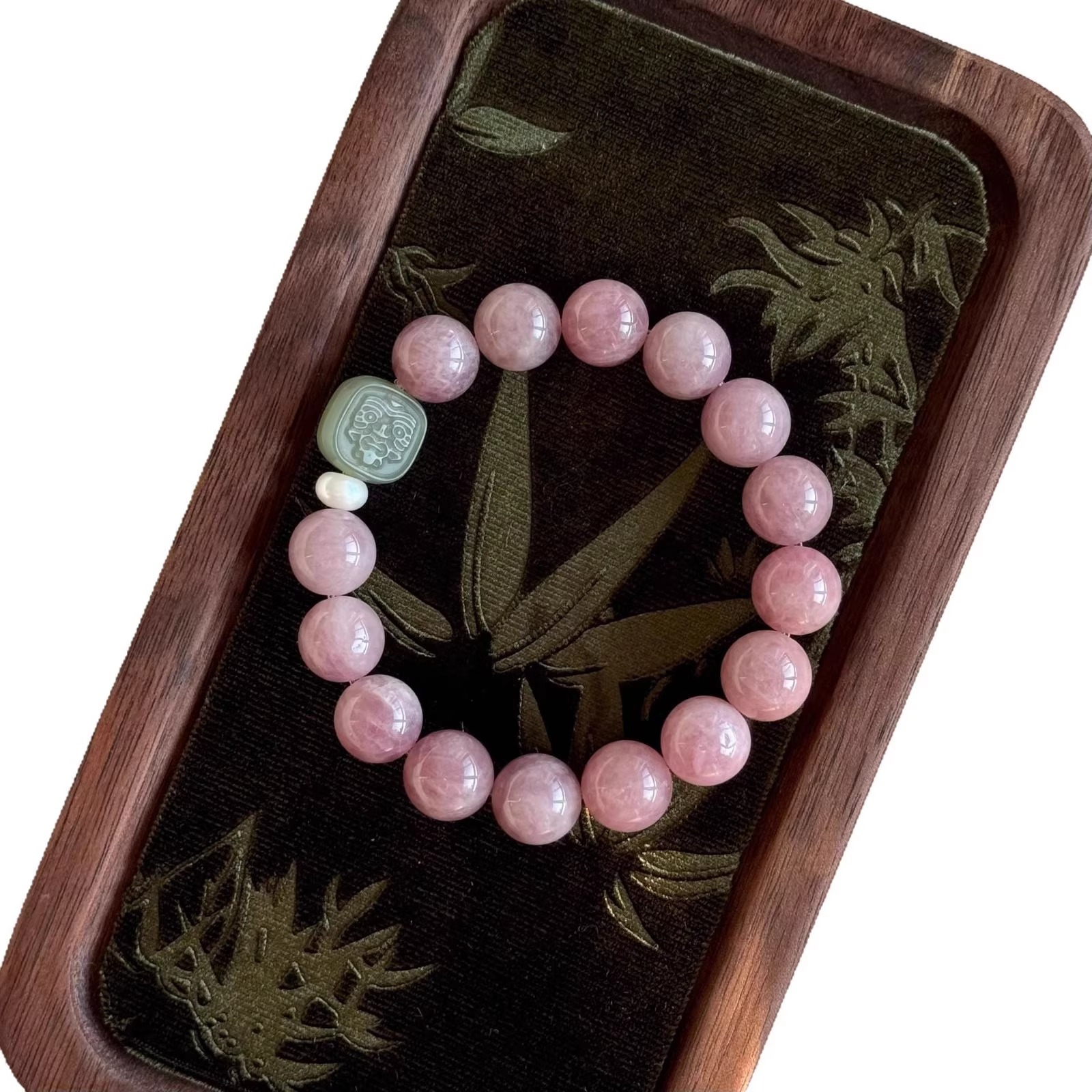 [blessing] 9-10mm madagascar pink crystal pink hetian jade pendant bracelet |