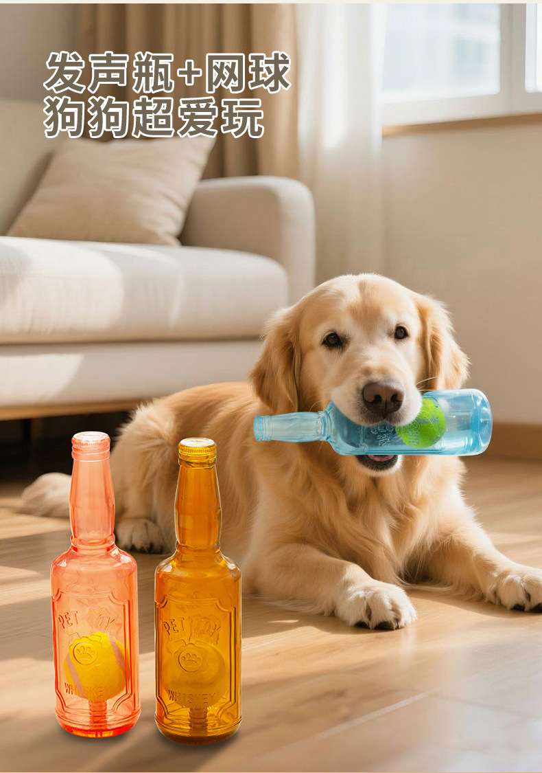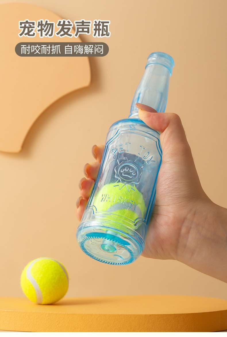 self-hi relieving stuffy dog toy molar teeth cleaning pet toy wear-resistant bite-resistant interactive tennis sound bottle toy 中文版
