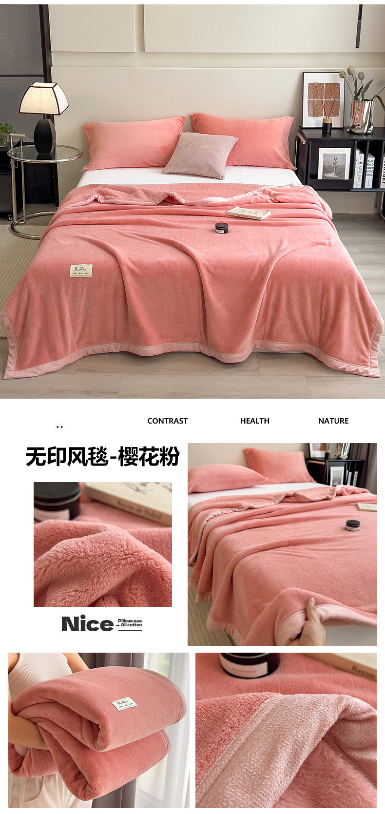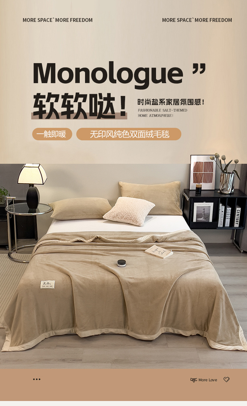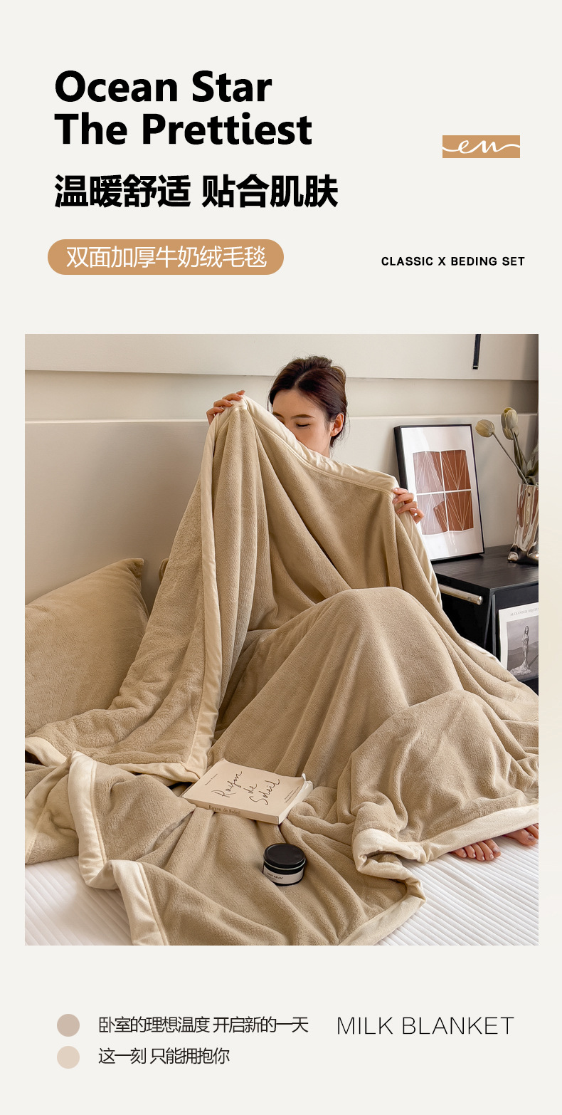 2025 type a heavy weight non-printed solid color milk fiber double-side velvet blanket series thick blanket clear 中文版
