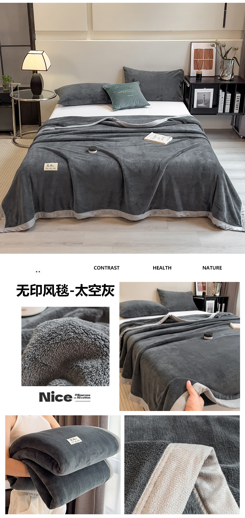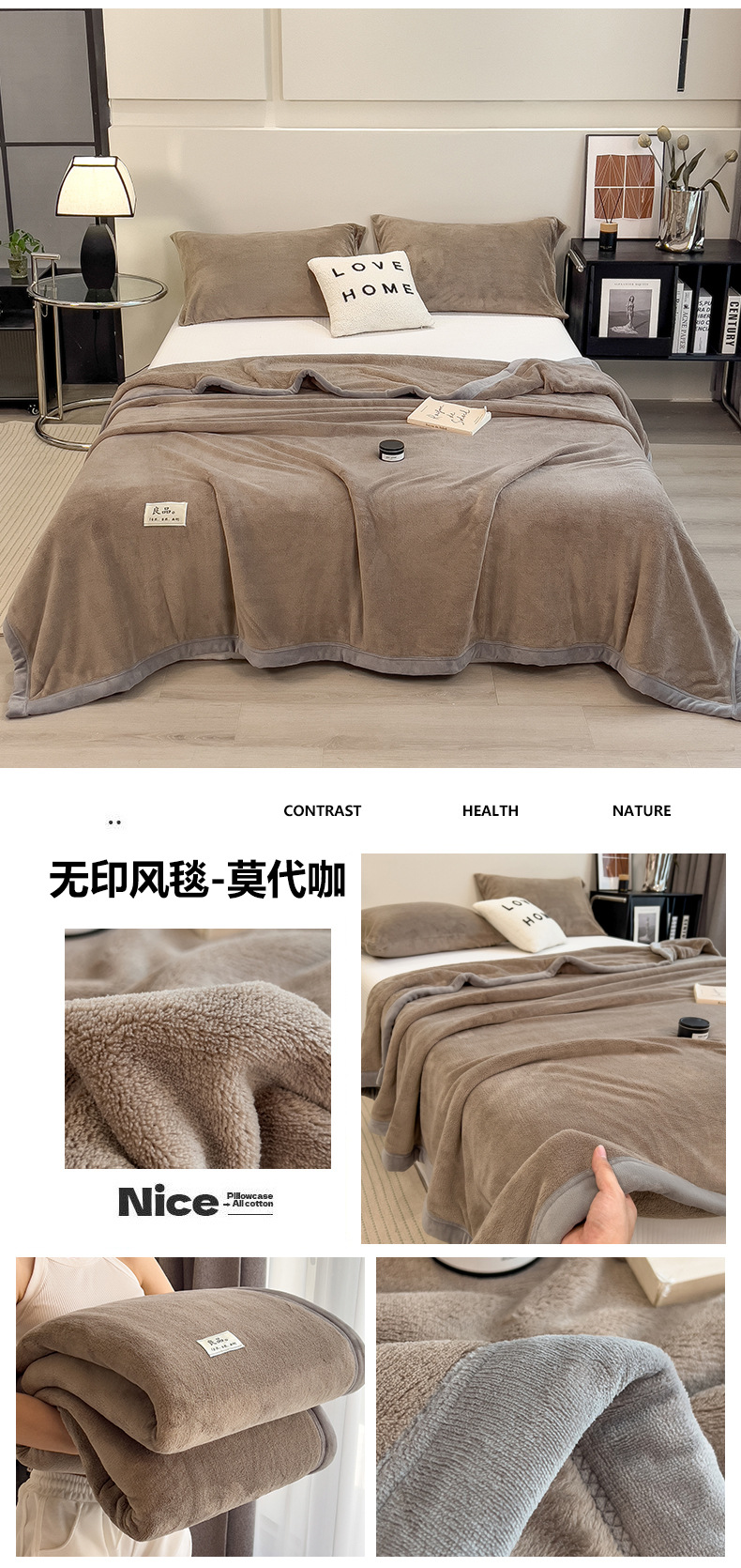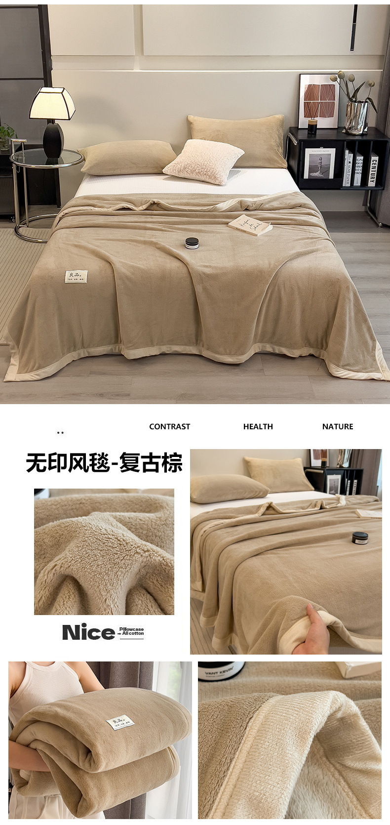 2025 type a heavy weight non-printed solid color milk fiber double-side velvet blanket series thick blanket clear 中文版