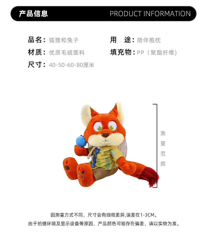 foreign trade zootopia plush toy doll pillow cloth doll fox nick doll wholesale