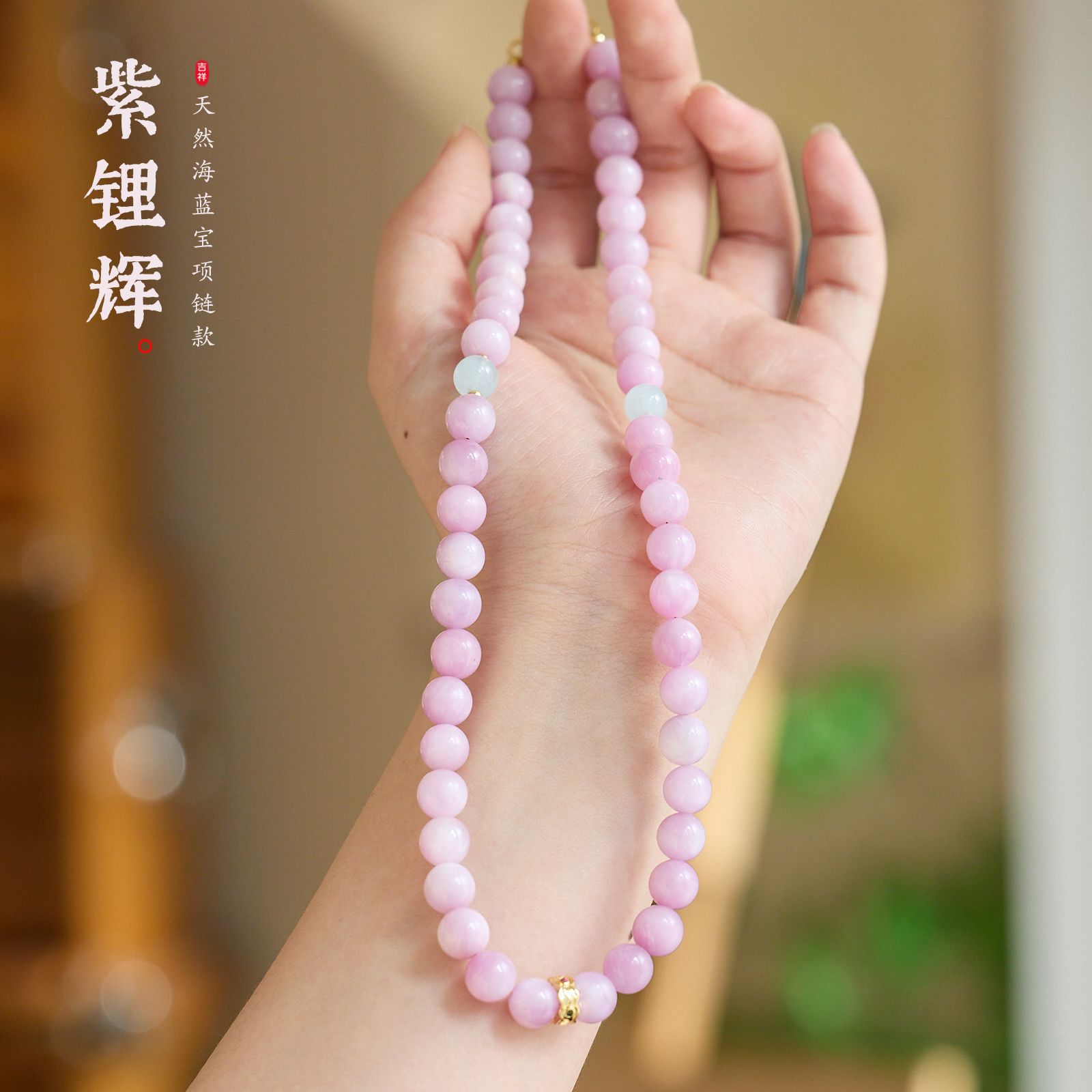 8mm spodumene purple aquamarine necklace [45cm]]