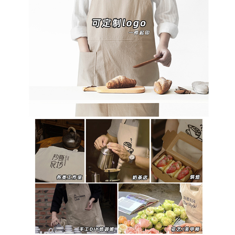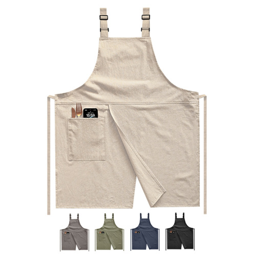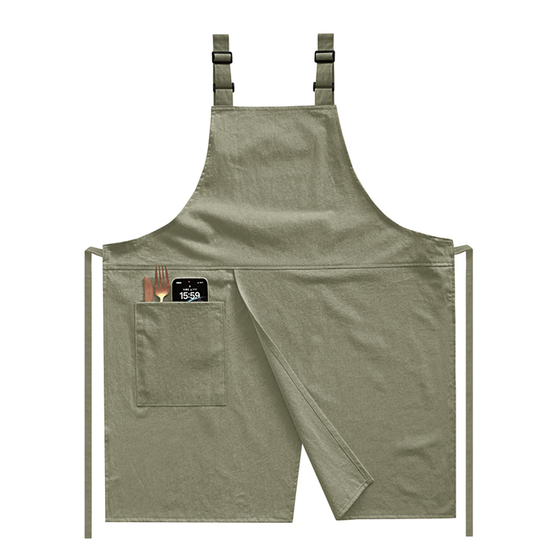slit shoulder cotton and linen apron (custom logo contact customer service)