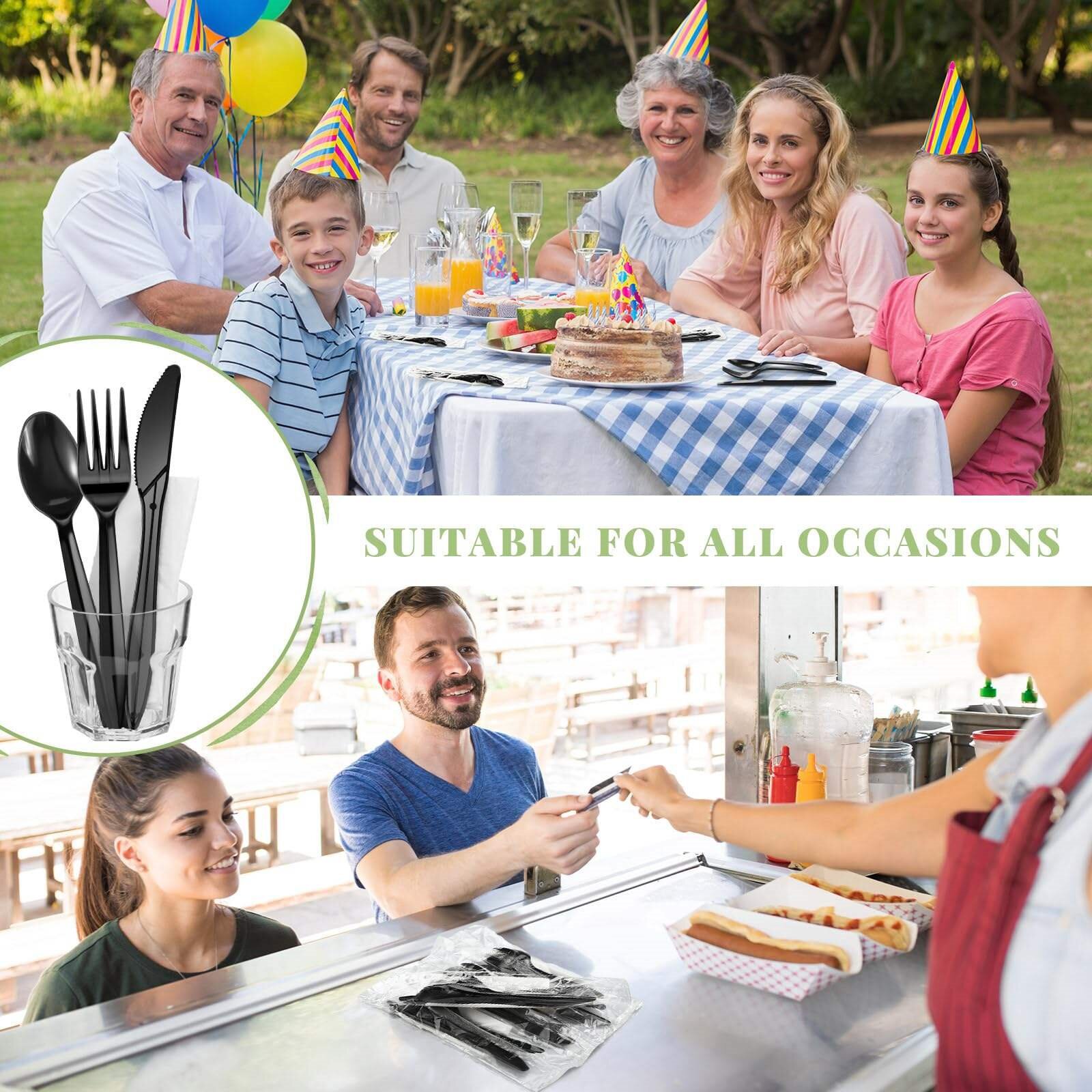 disposable plastic thickened knife, fork and spoon suit independent packaging takeaway dessert plastic cutlery set with napkin