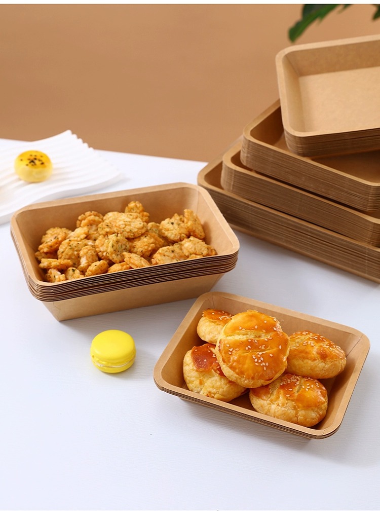 disposable service plate barbecue plate paper plate rectangular commercial kraft paper tray french fries fried chicken snack dish