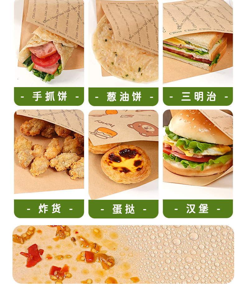 disposable breakfast bag sandwich paper oil-proof wrapping paper bag household triangle bag burger wrapping paper cake oil insulation