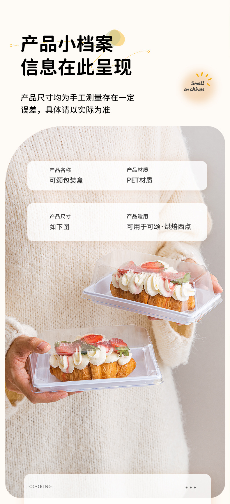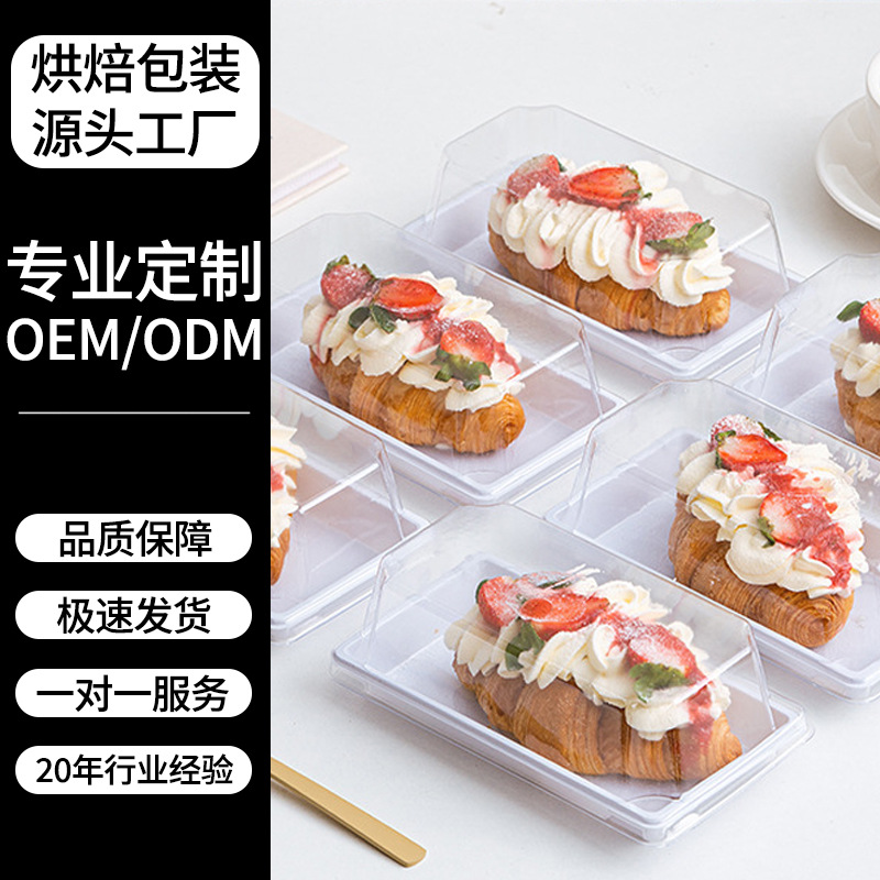 source factory customized food grade transparent dessert horn package box anti-fog thickened baking shop to-go box