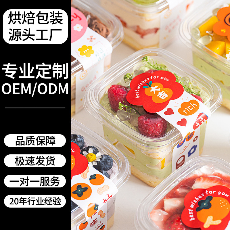 source factory customized food grade square mousse box dessert tiramisu wood bran cup baking box