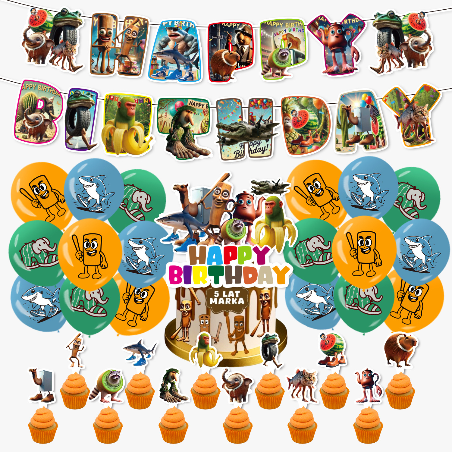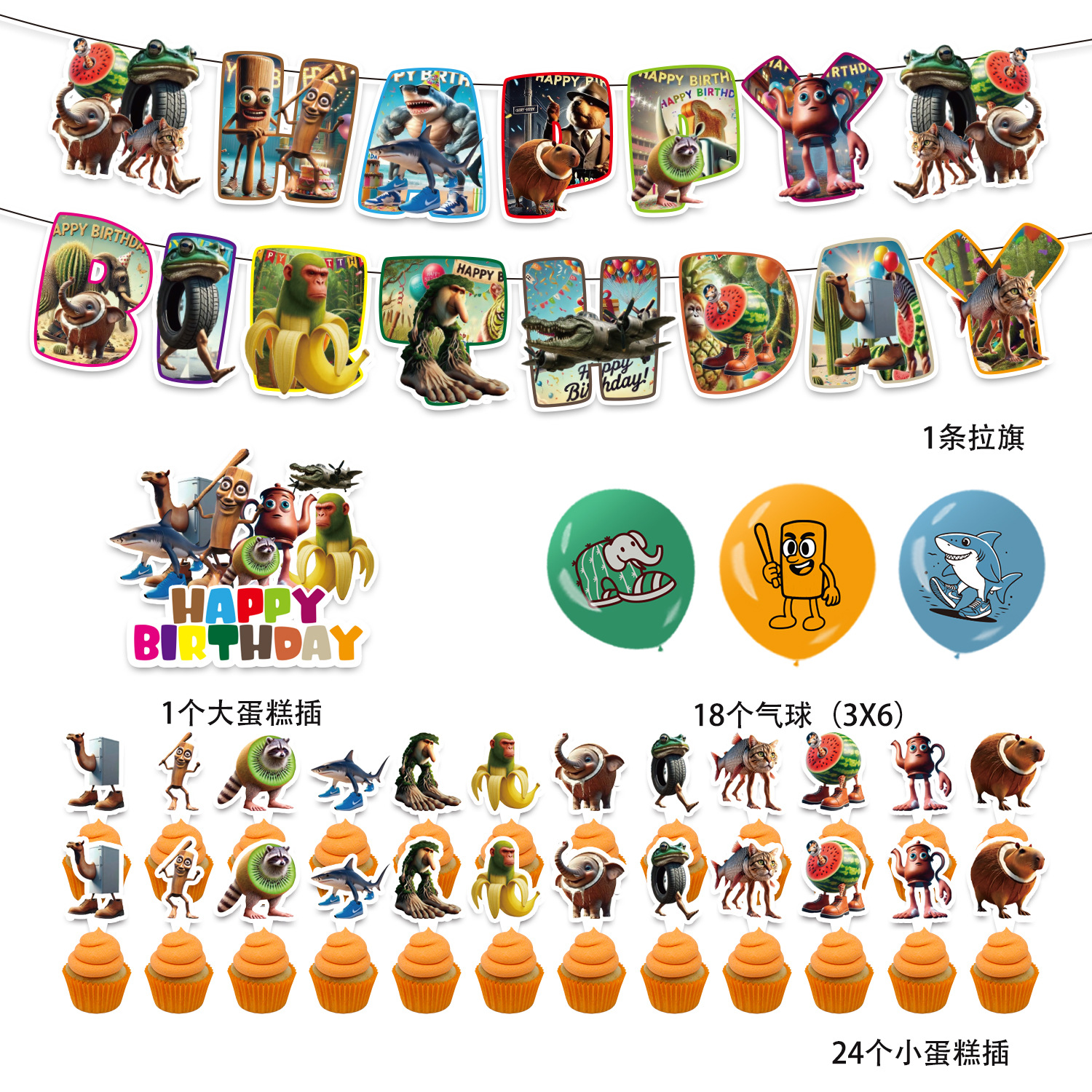 paper flag 1 set + small decorative flag 12 + large decorative flag 1+18 balloons