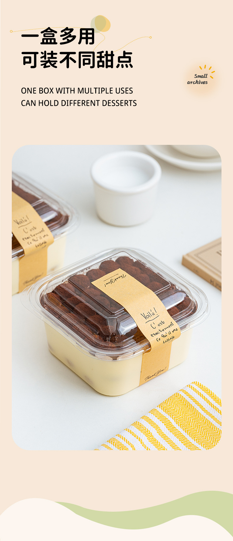 factory customized food grade pet soymilk box packaging mousse tiramisu baking dessert sub-packaging to-go box