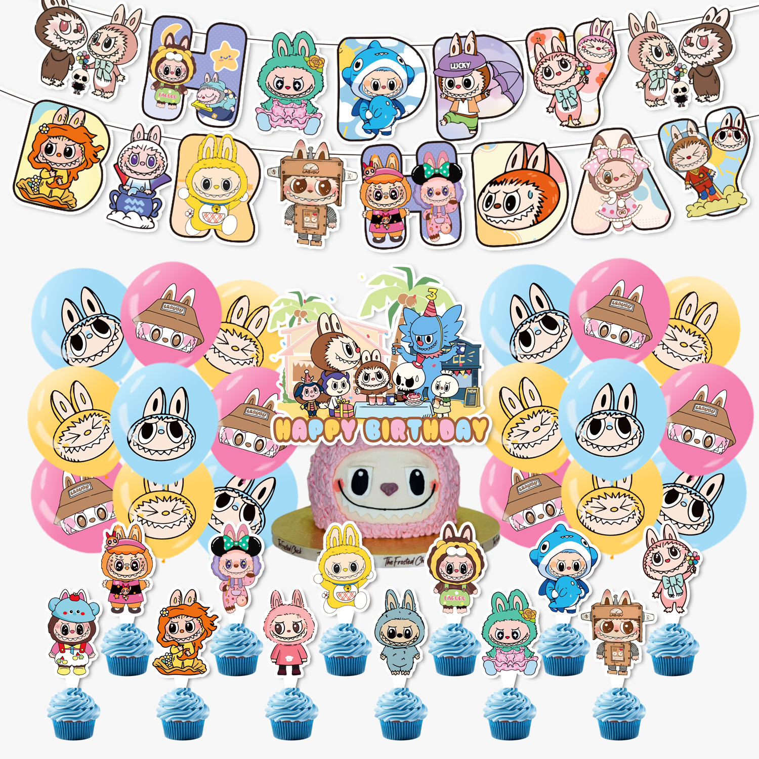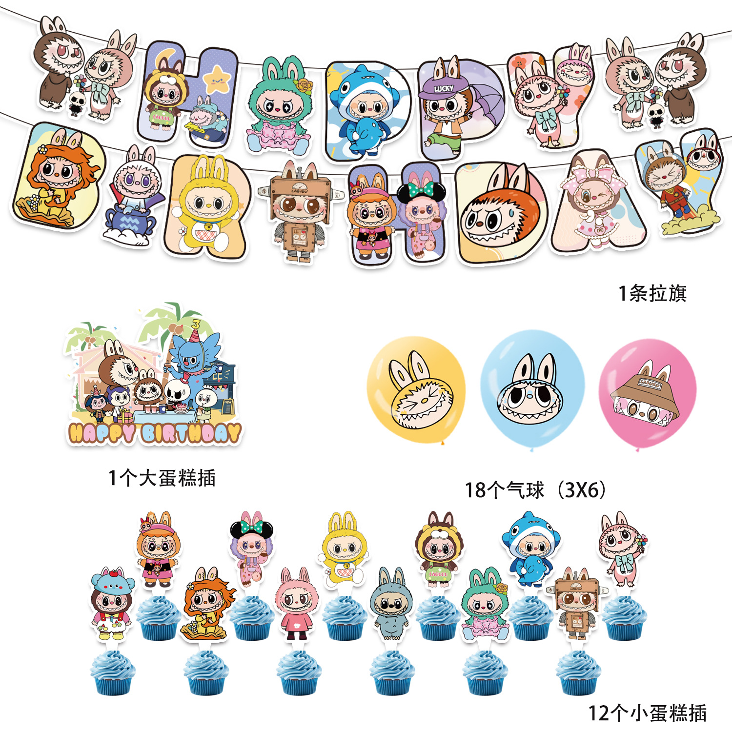 paper flag 1 set + small decorative flag 12 + large decorative flag 1+18 balloons