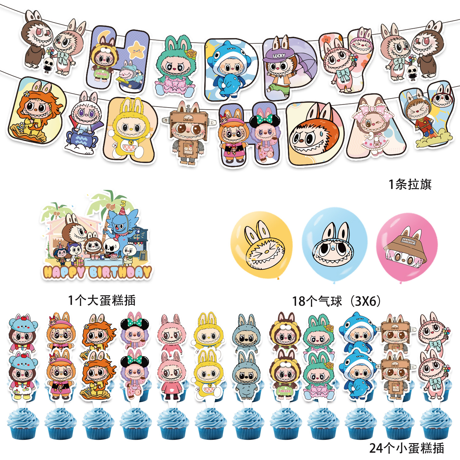 paper flag 1 set + small decorative flag 24 + large decorative flag 1+18 balloons