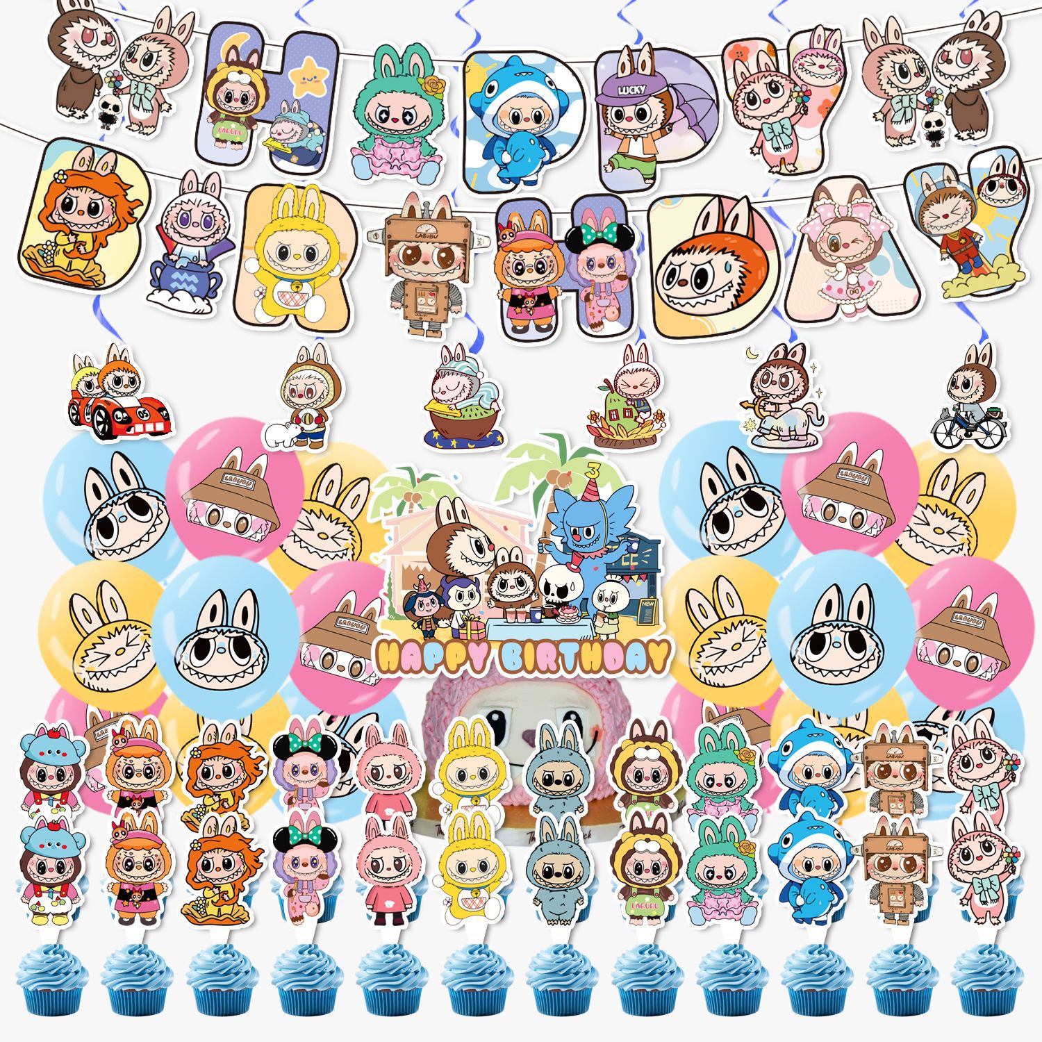 paper flag 1 set + small decorative flag 24 + large decorative flag 1+18 balloons +6 spiral ornaments
