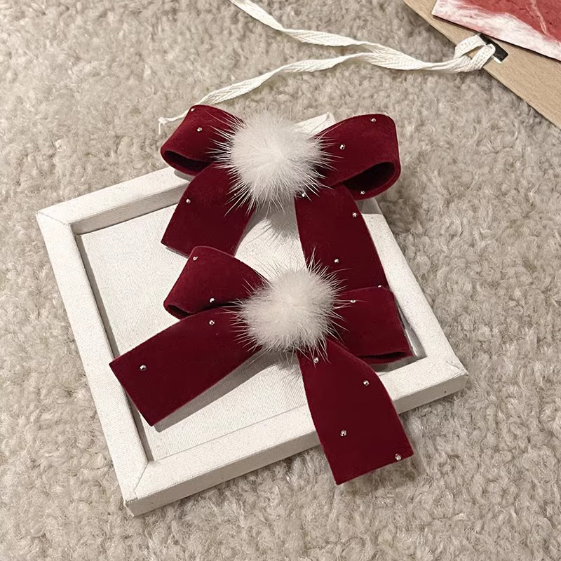 wine red bow a pair of hairclips