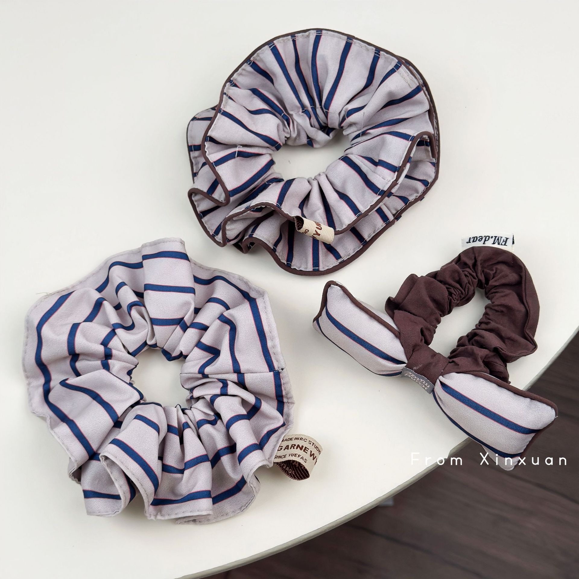 blue stripe bowknot hair ring