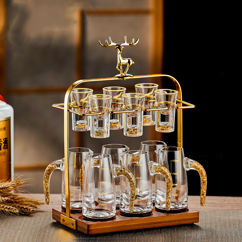 gold foil style 6 pot 6 cups + deer head cup holder