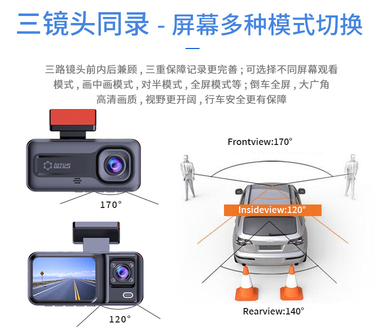 foreign trade exclusive a98 hd night vision 1080p three lens wifi driving recorder 2 inch ips screen real three records
