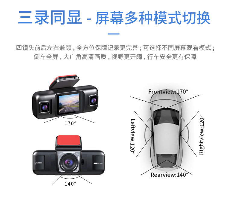 foreign trade exclusive for three recording four lens 1080p driving recorder full car dvr monitoring hd night vision 2-inch screen