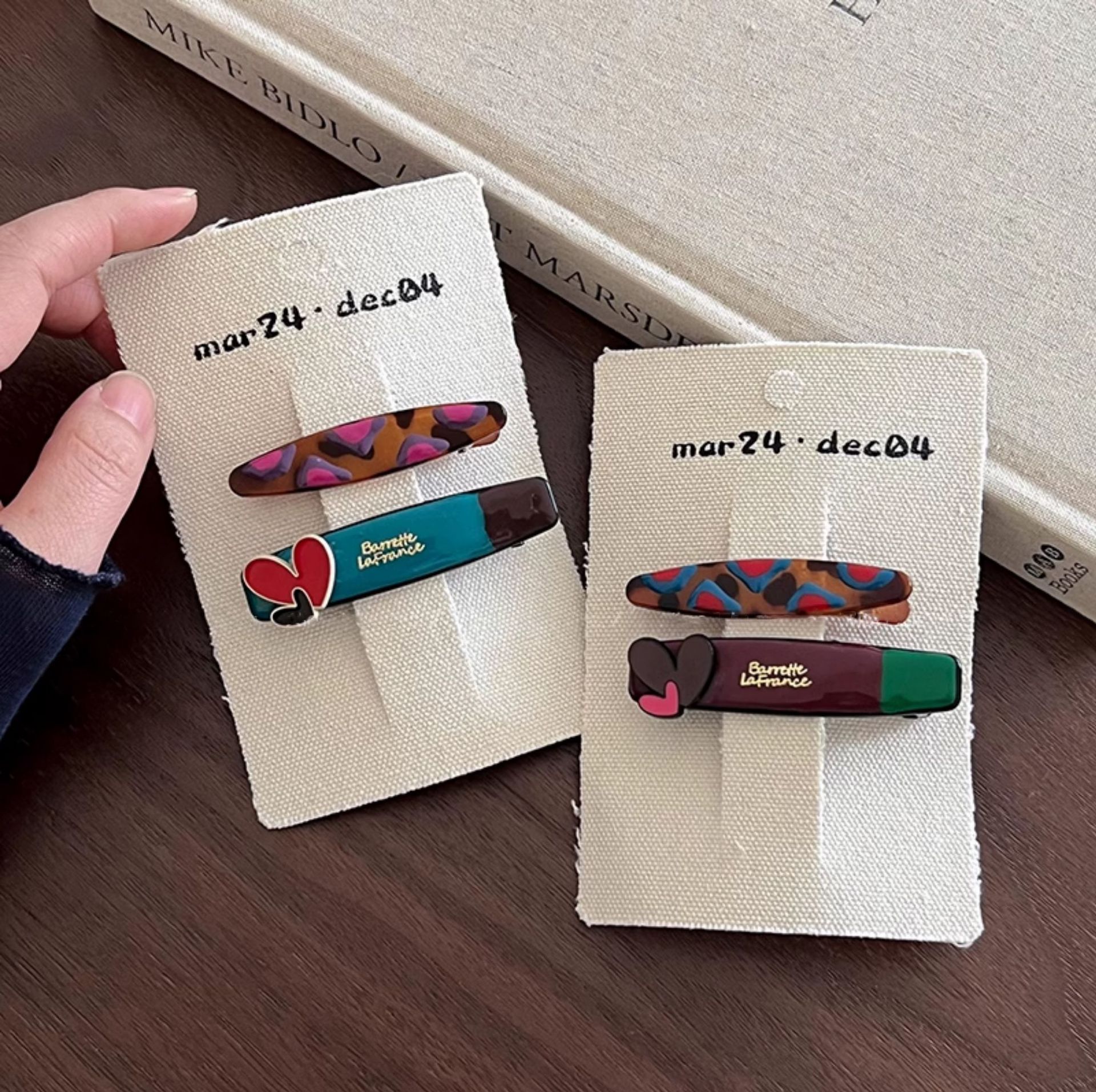 red and black love a pair of hairclips