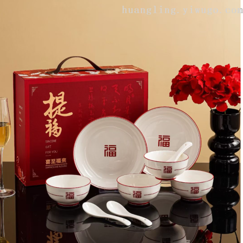 festive red tifu full of ceramic tableware bowls dishes saucers spoons gift set