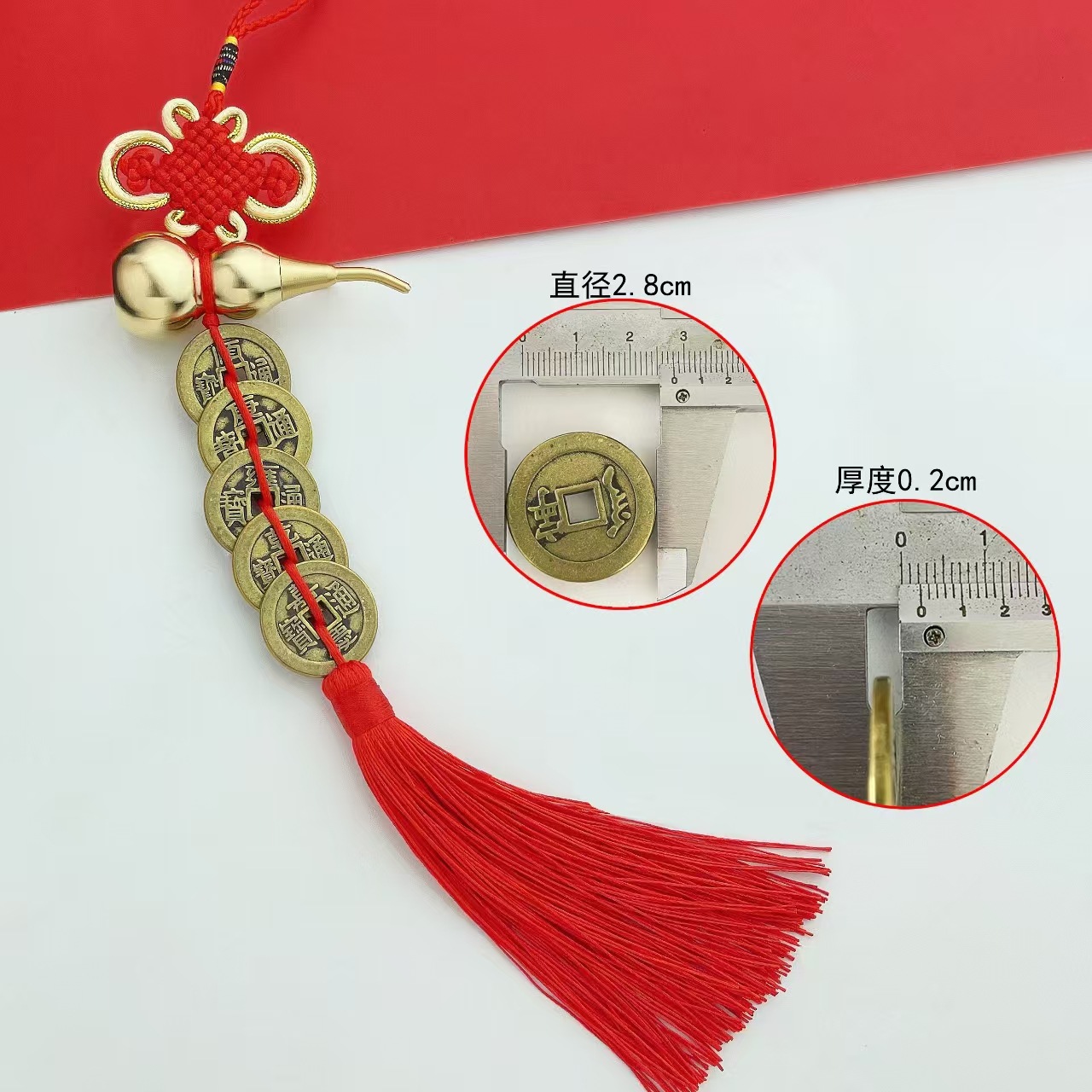 pure red knot 4cm head tilt copper gourd five emperors pendant [open]]