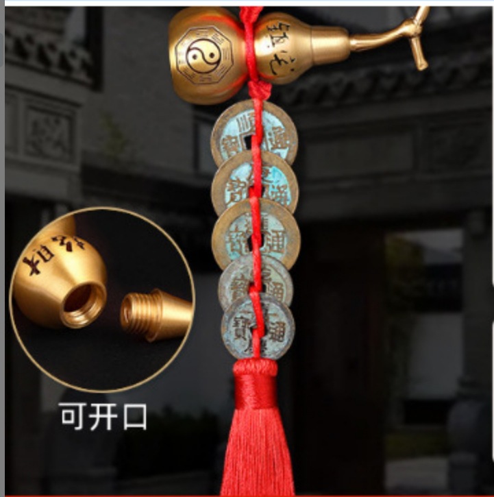rich knot 7cm sealing glaze eight diagrams copper gourd five emperors pendant