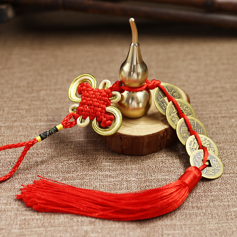 pure red knot 7cm sealing glaze eight diagrams copper gourd five emperors pendant