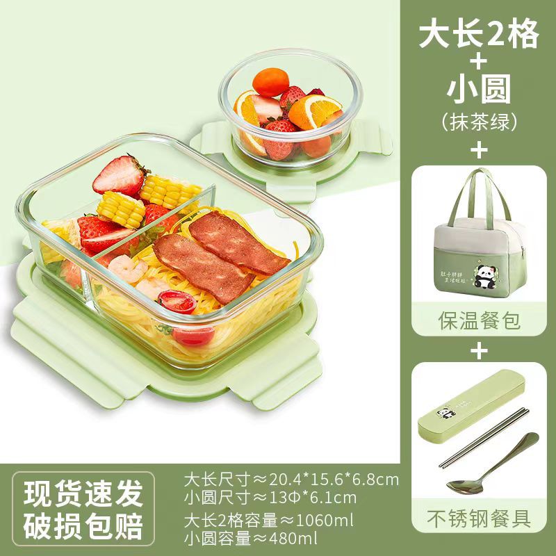 matcha green [large length 3 grids + medium circle] + panda bag + panda stainless steel tableware