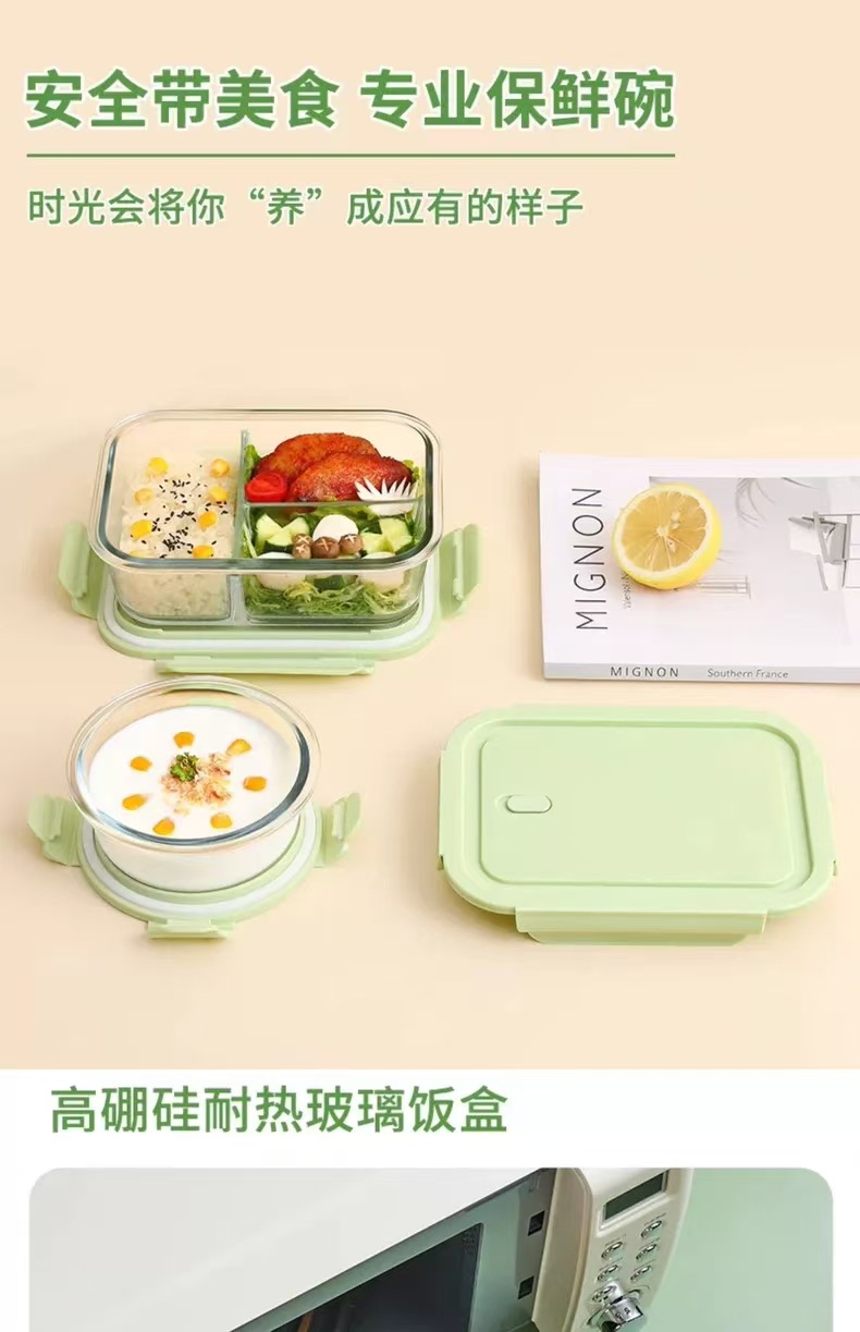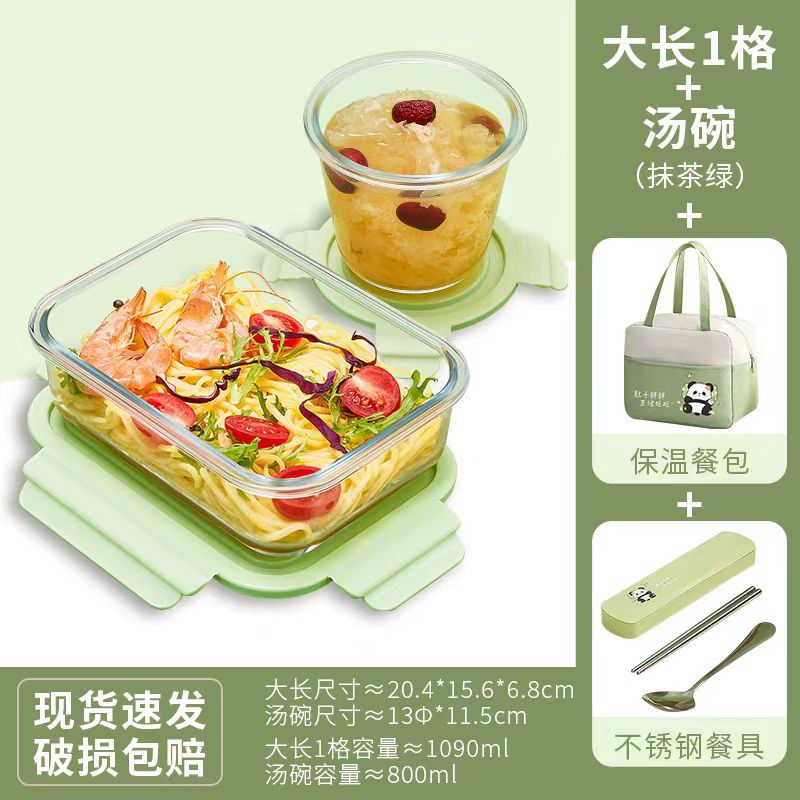 matcha green [large length 1 grid + soup bowl] + panda bag + panda stainless steel tableware