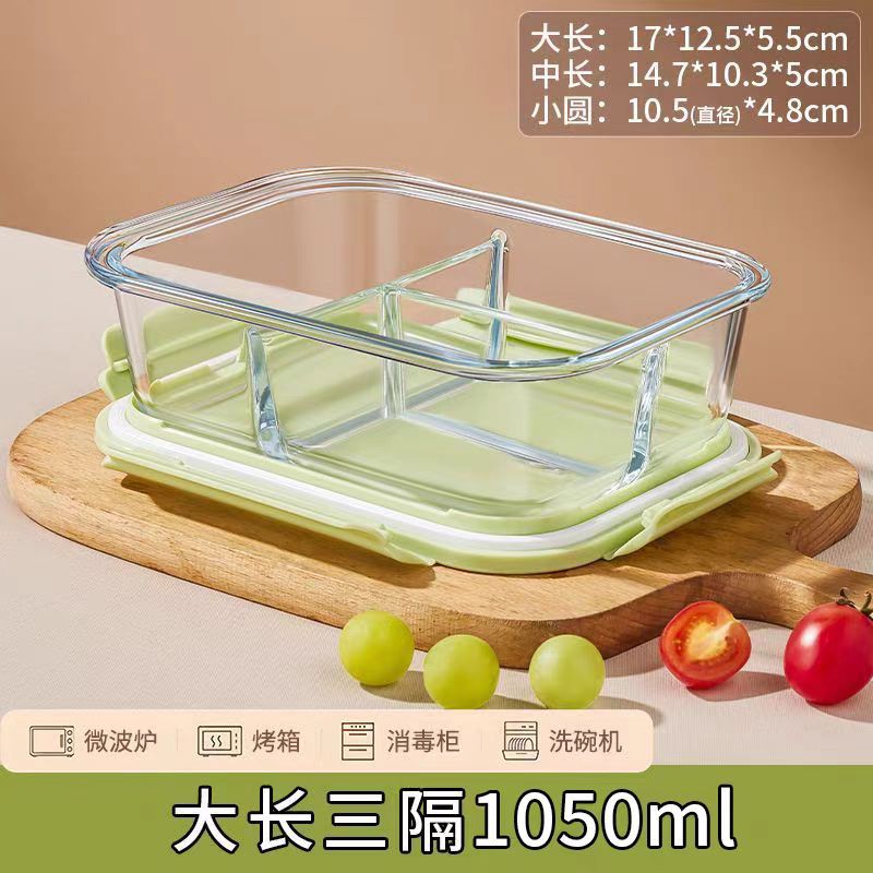 matcha green [big long 1 grid + soup bowl + small round] + panda bag + panda stainless steel tableware