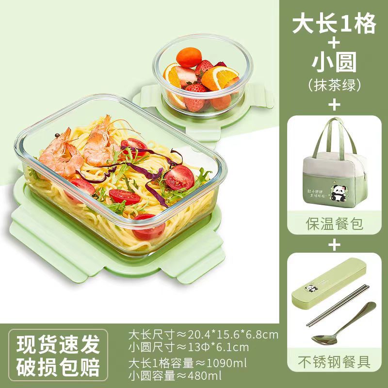 matcha green [large length 1 grid + medium circle] + panda bag + panda stainless steel tableware