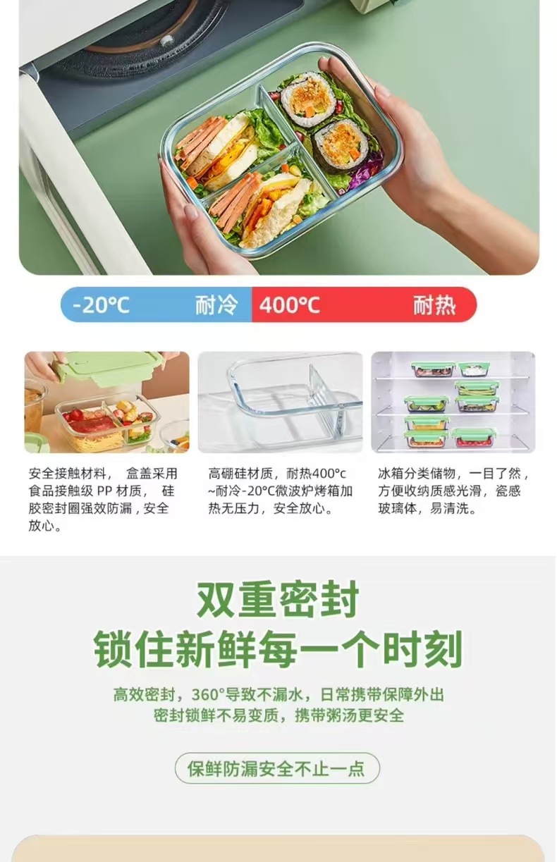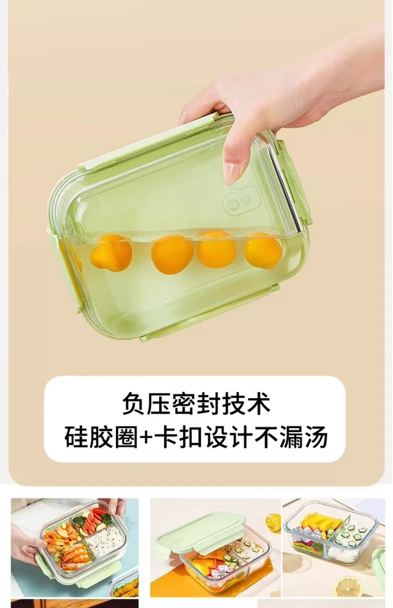 matcha green [big long 3 grid + small round] + panda bag + panda stainless steel tableware