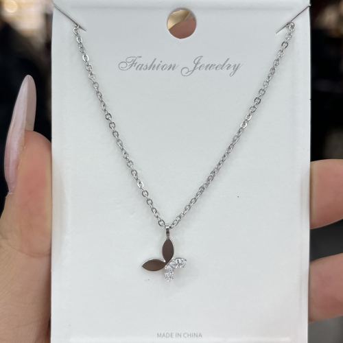 Copper-plated white K zircon butterfly necklace design, with color retention, can be replaced with gold plating colors and chain styles.