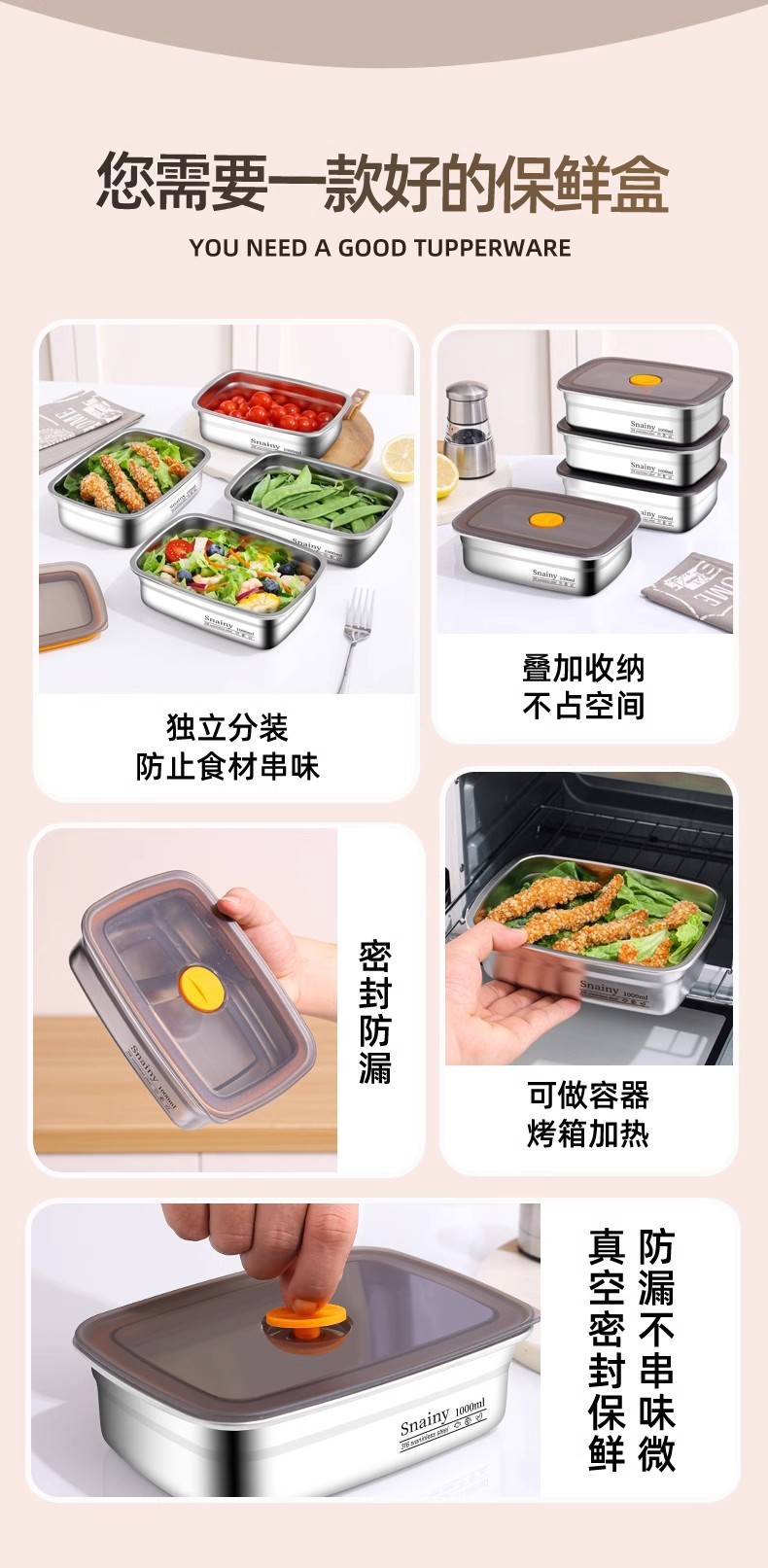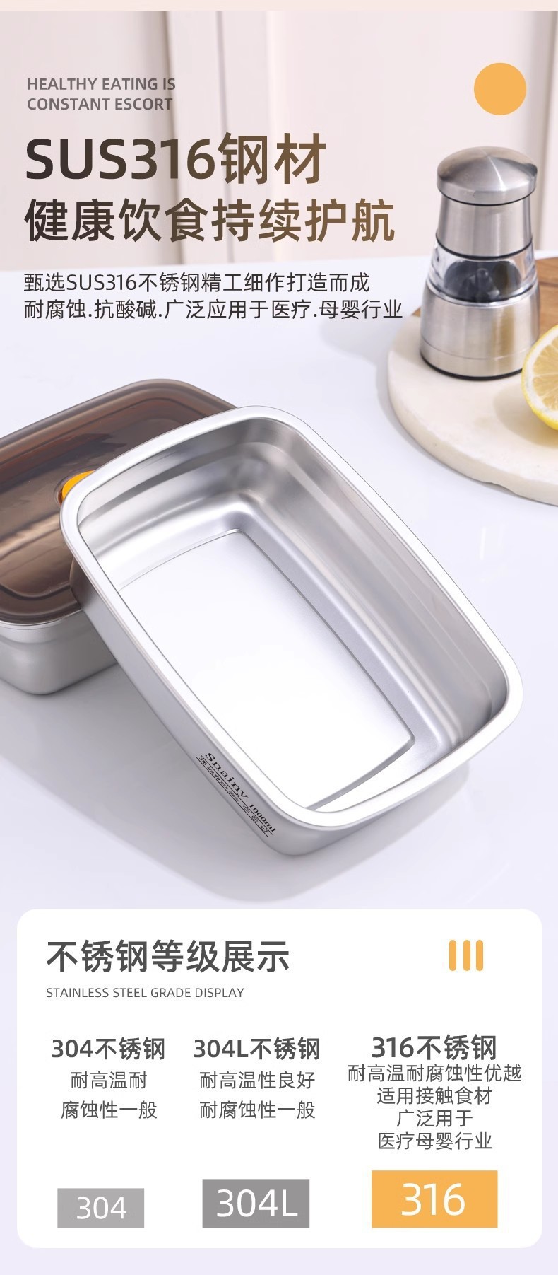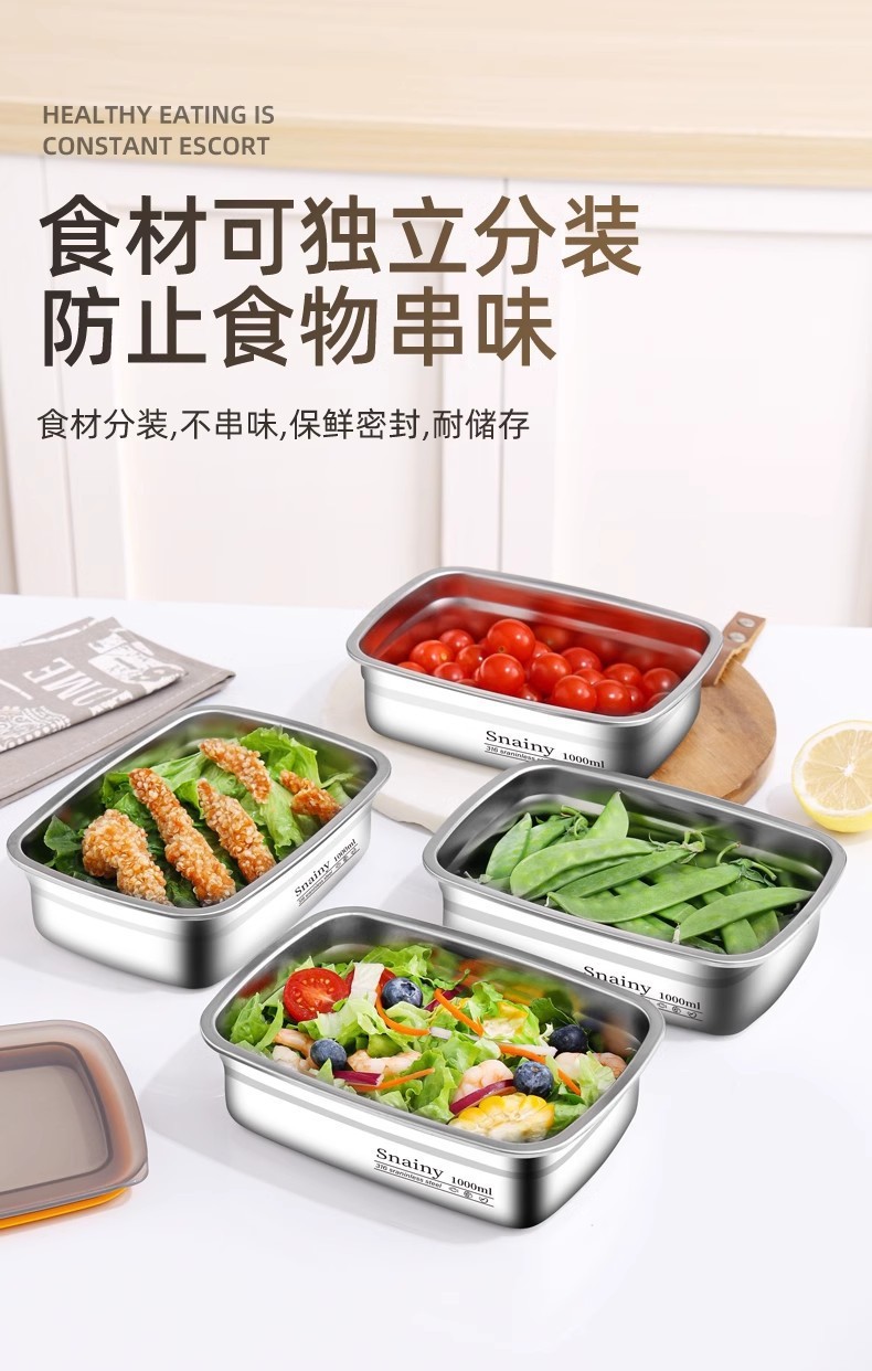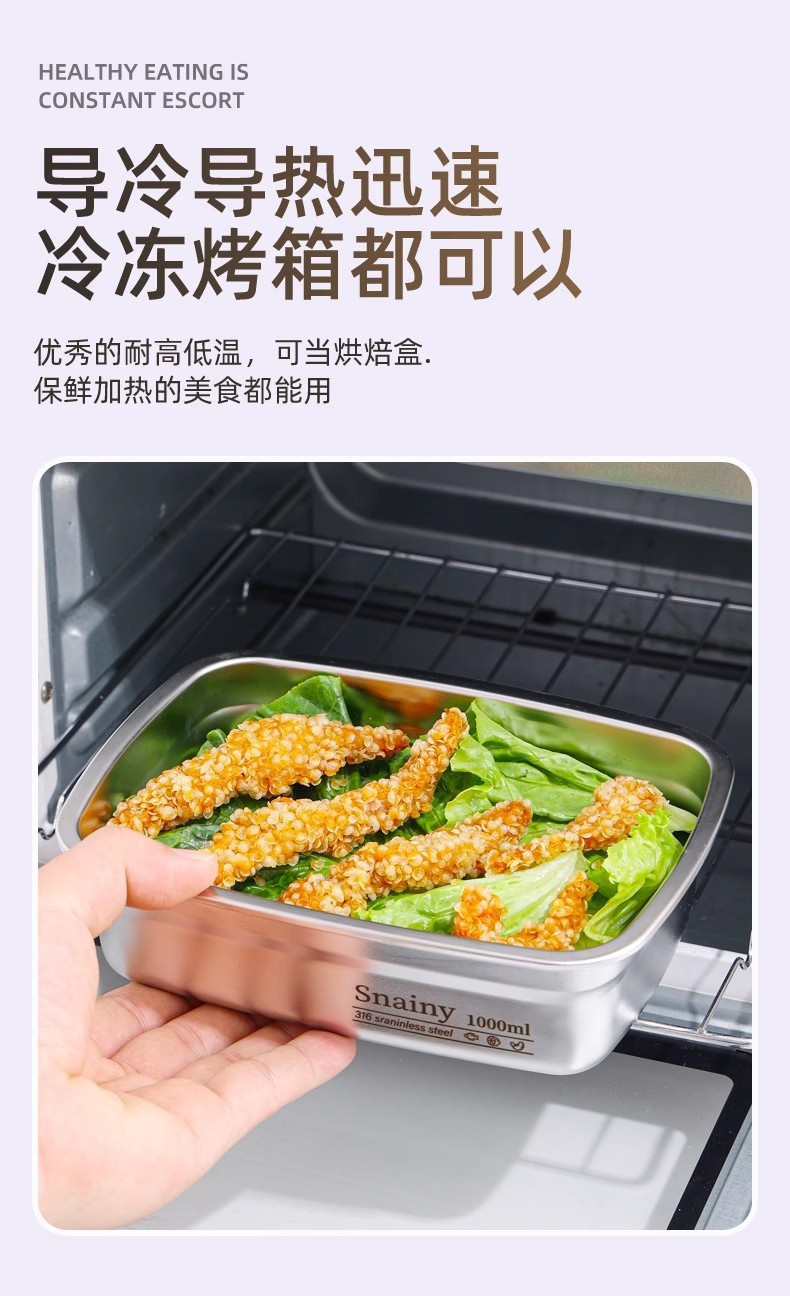 316 stainless steel crisper microwave oven square fresh lunch box office worker canteen lunch box cross-border