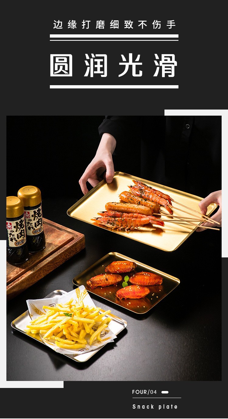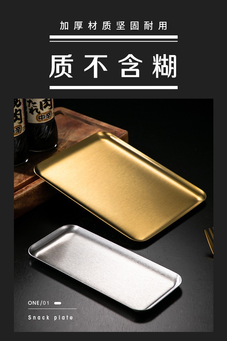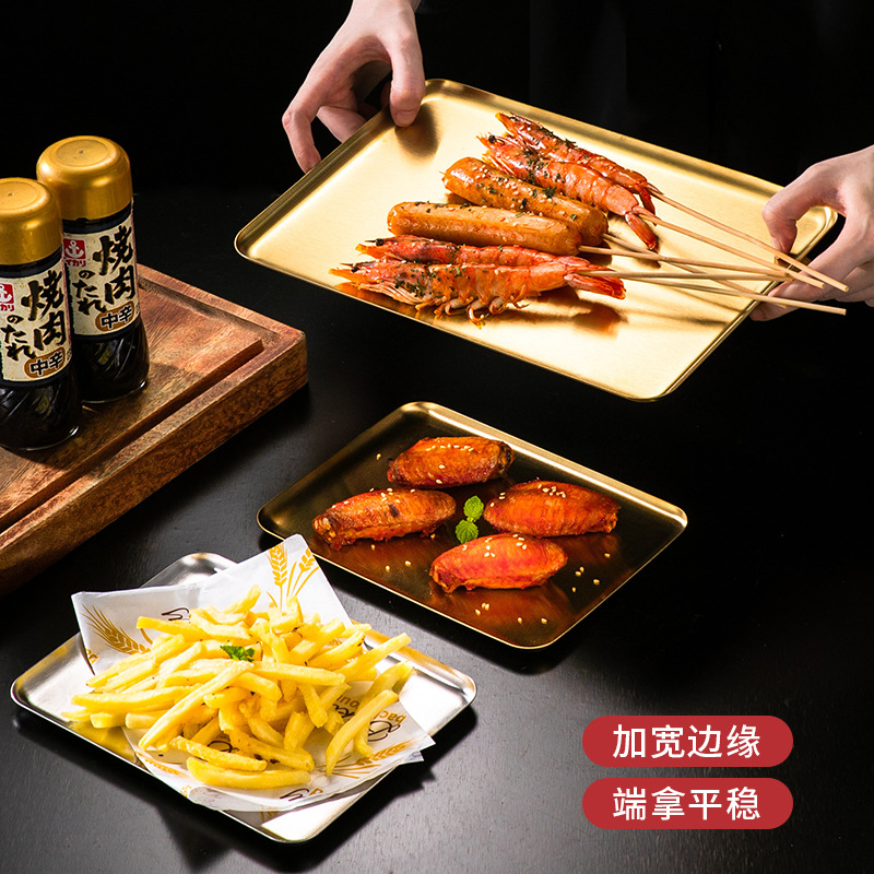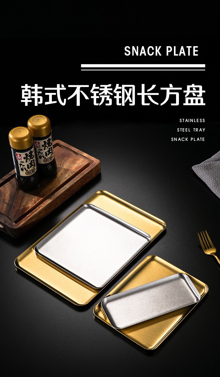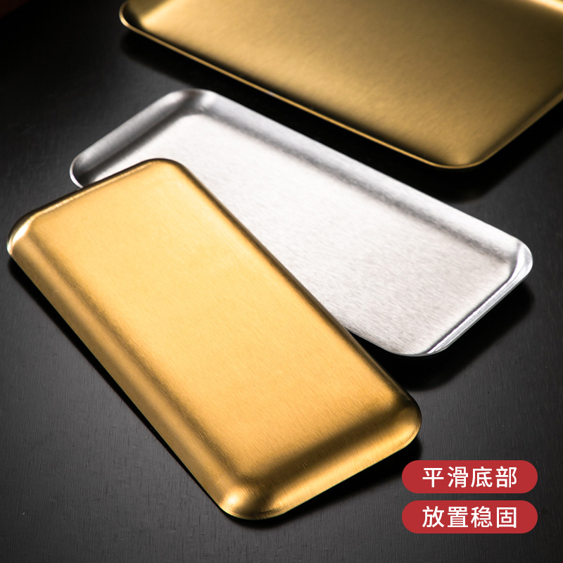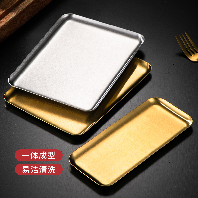 korean-style stainless steel rectangular coffee shop tray dessert cake plate commercial gold barbecue plate plate dish