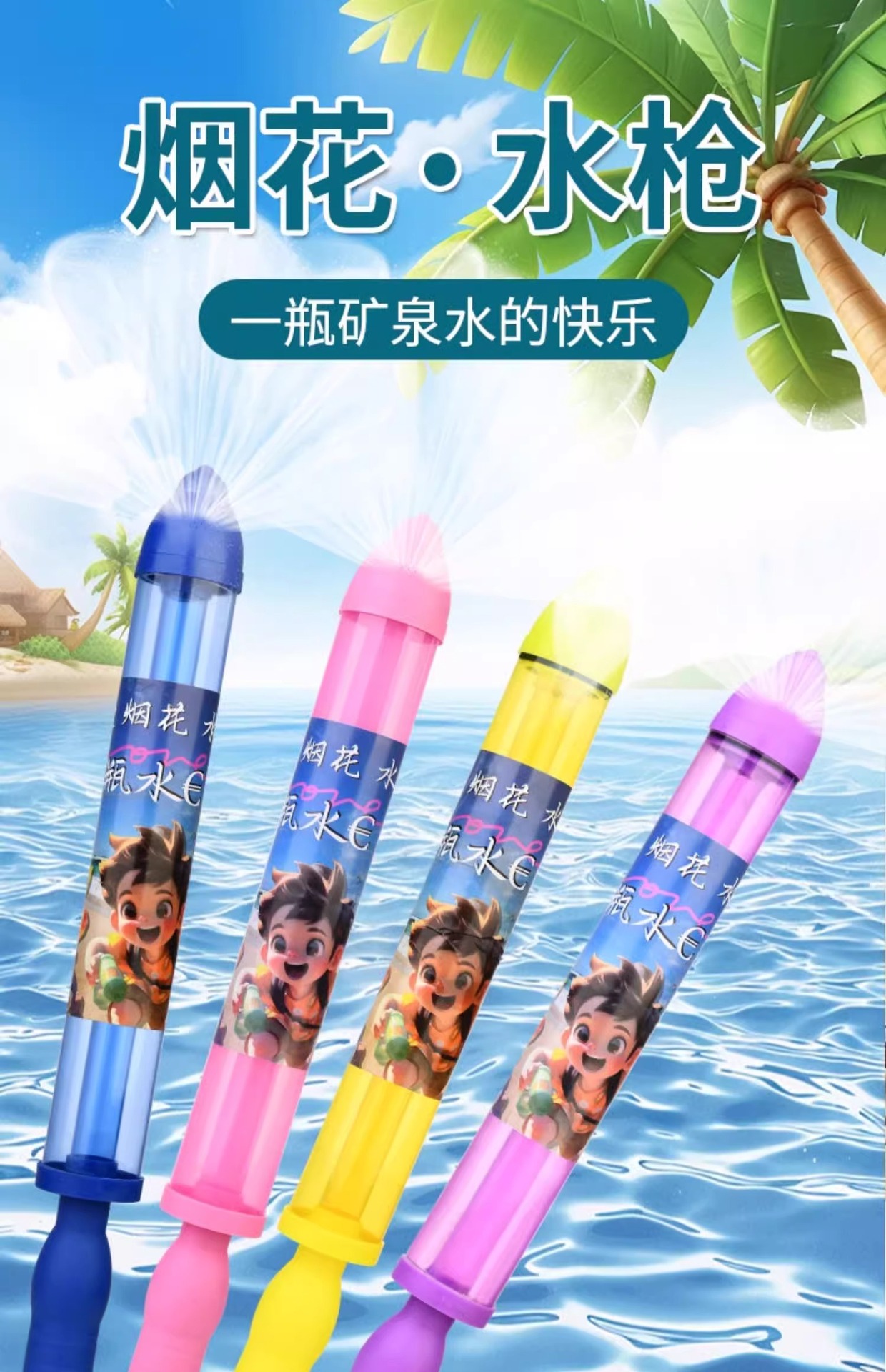 small upgrade [4-piece fireworks water gun set] blue + pink purple + yellow