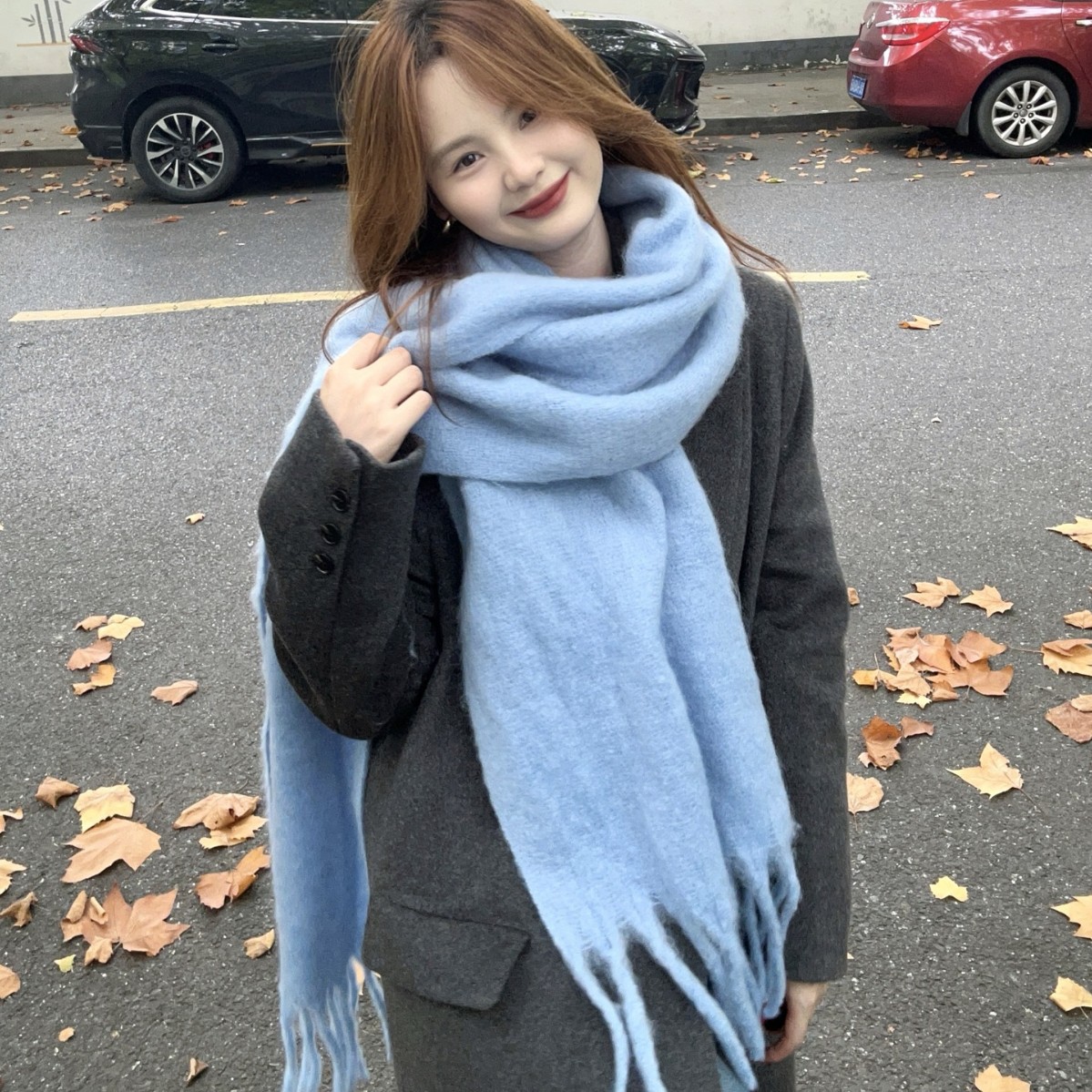 solid color large scarf thick haze blue