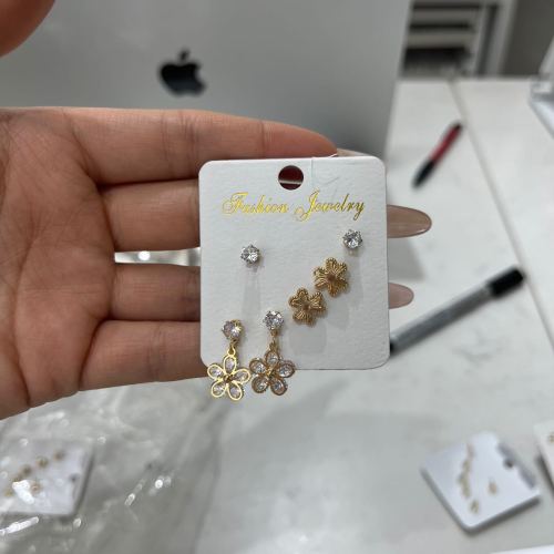 Copper-plated gold ear studs in a set of three, with color retention guarantee, available for wholesale with price negotiation.