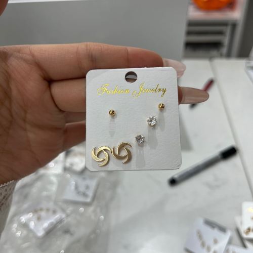 Copper-plated gold ear studs in a set of three, with color retention guarantee, available for wholesale with price negotiation.