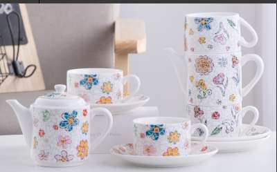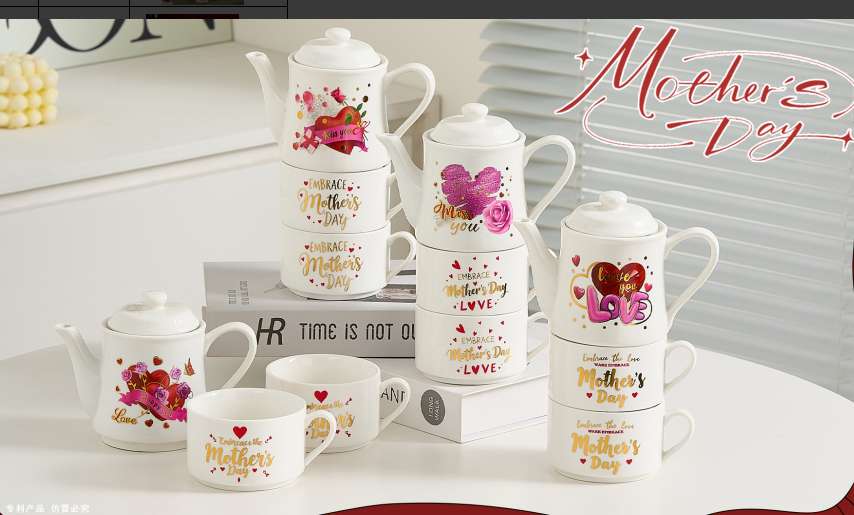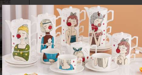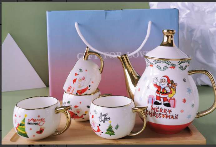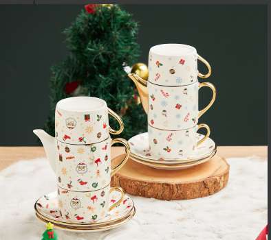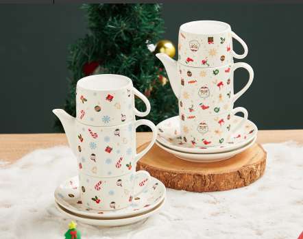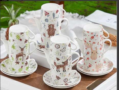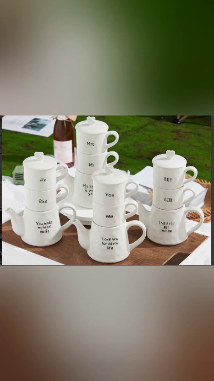 Gift Customized Coffee Set with Ceramic Cup, Ceramic Dish, and Stand, Gift-Worthy Ceramic Letter Kettle Set