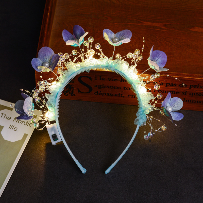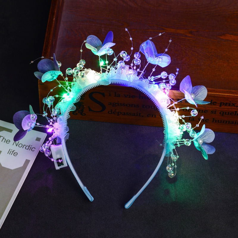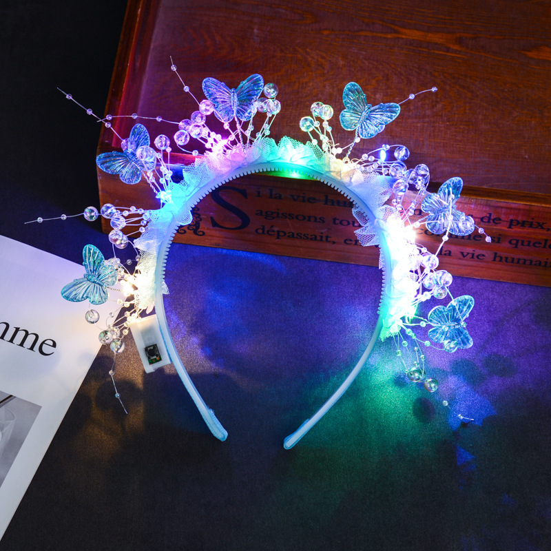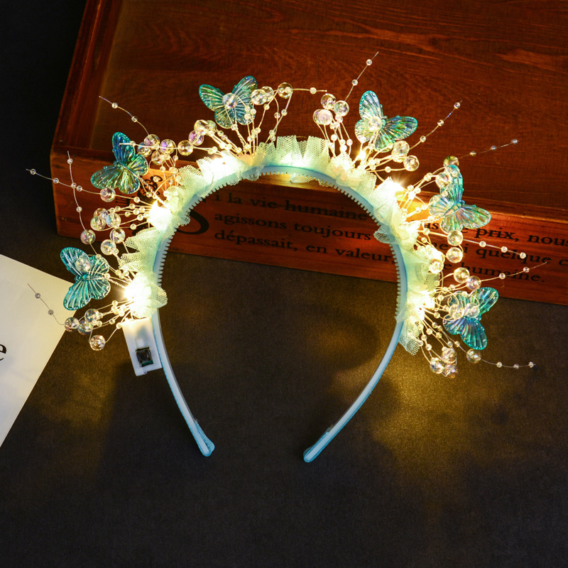 wearing flower butterfly headband [blue colored lights]]