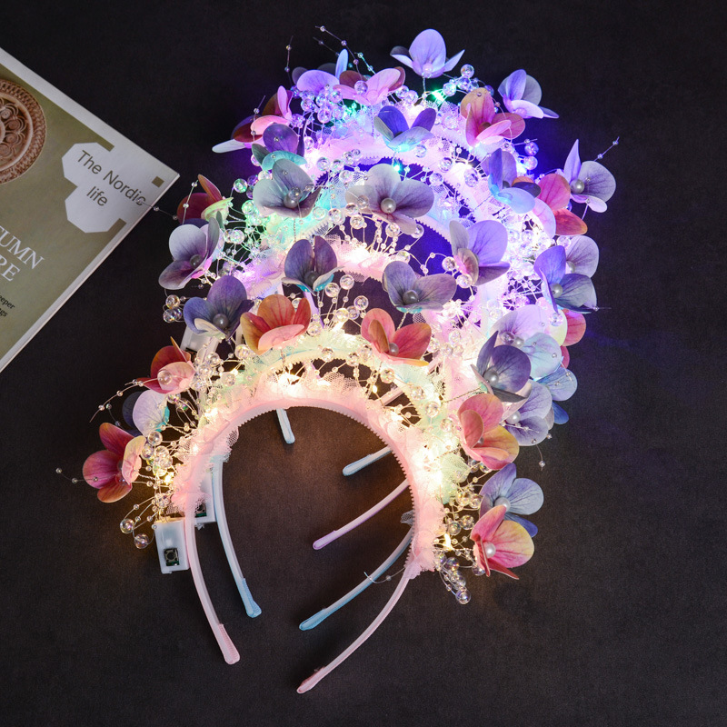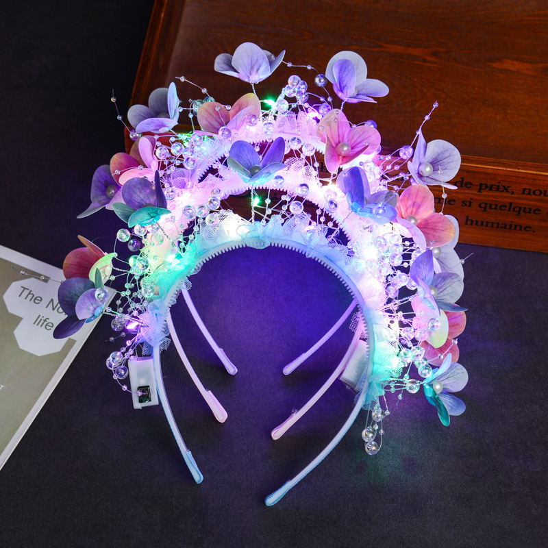 wearing flower flower headband [purple colored lights]]