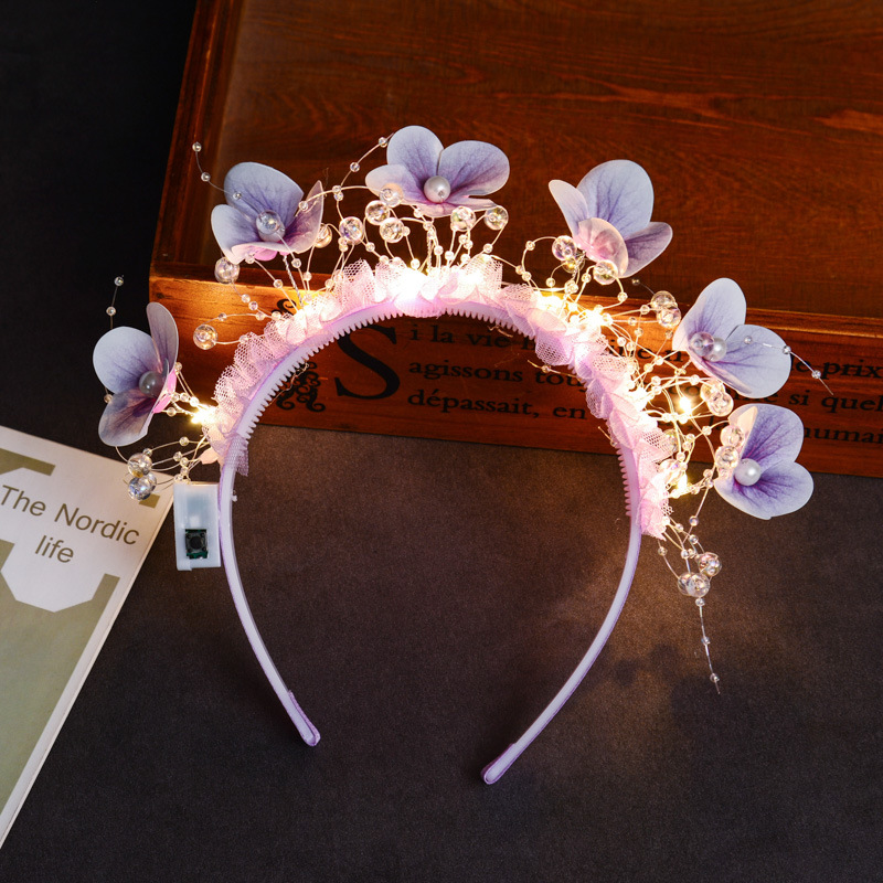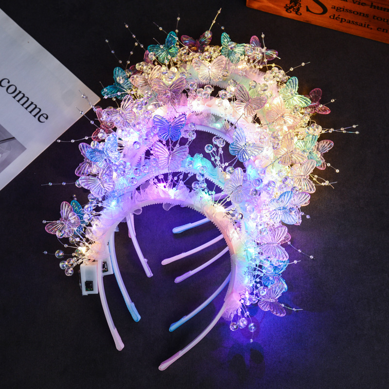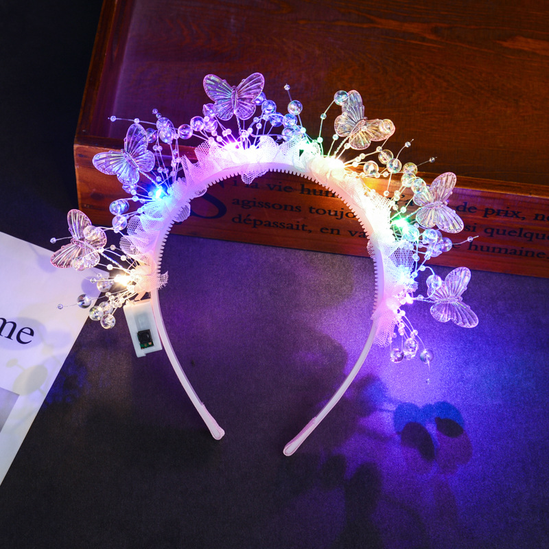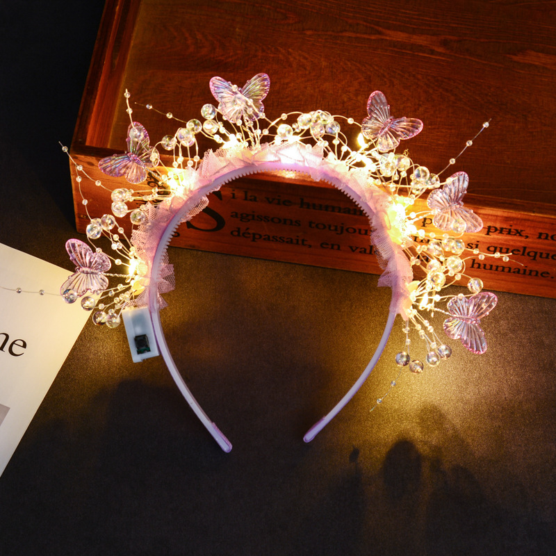 wearing flower butterfly headband [pink colored lights]]
